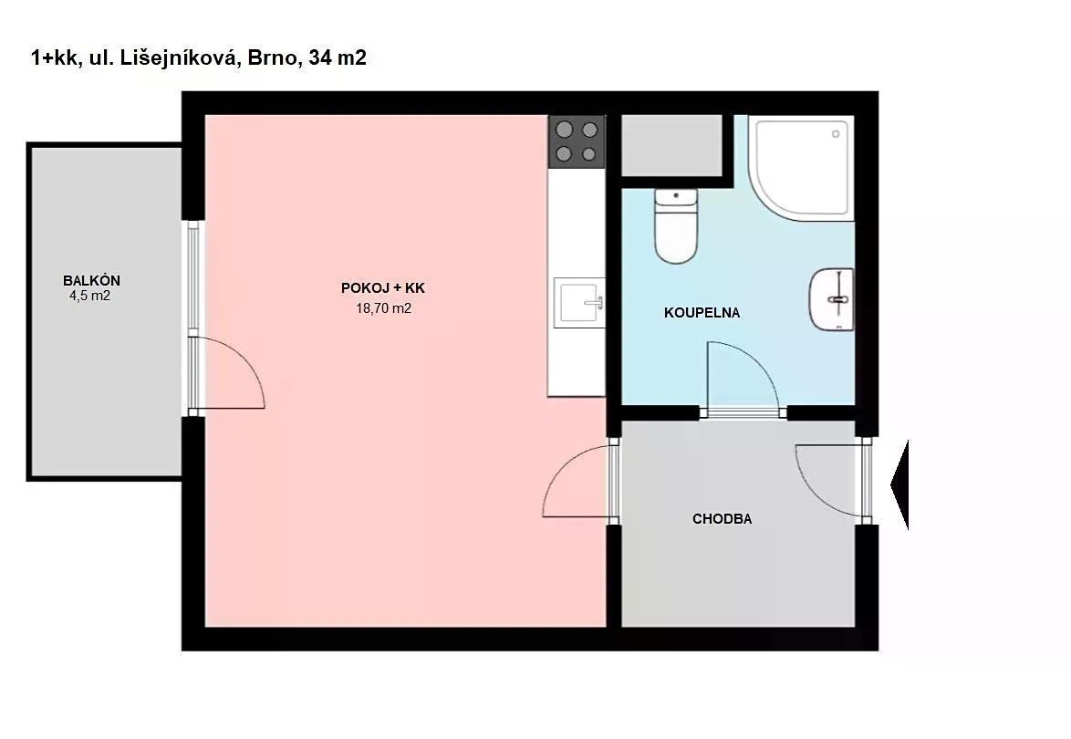 Pronájem bytu 1+kk 34 m² Lišejníková, Brno - Žebětín