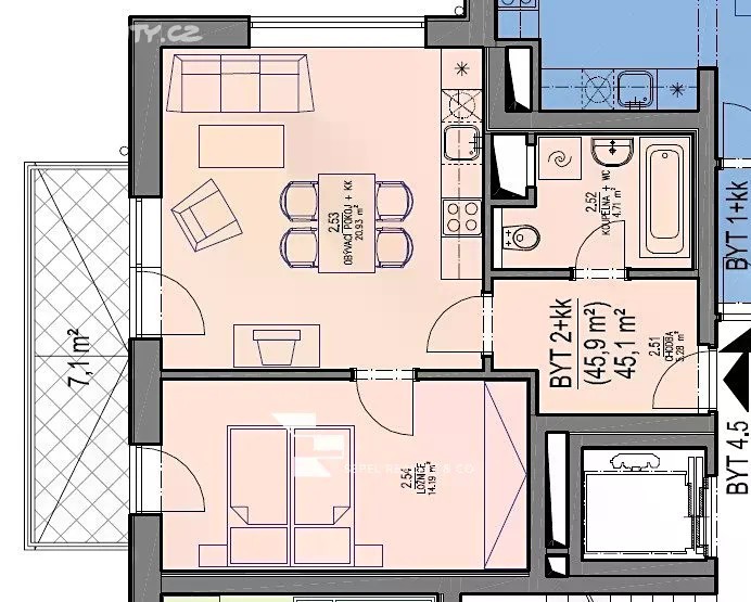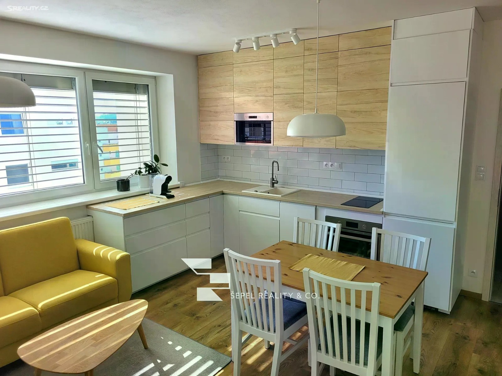 Se souhlasem majitele nabízíme k dlouhodobému pronájmu moderní byt o dispozici 2+kk v klidné lokalitě Brno - Žebětín na ulici Přírodní, lokalita Brno - Kamechy. Byt se nachází ve čtvrtém patře cihlové novostavby s výtahem. K bytu patří balkon, sklepní kóje o půdorysných rozměrech 1,2x2,2 m, a možnost pronájmu garážového parkovací stání za příplatek 1.600,-Kč/měsíc. (parkovací stání má mezi sloupy šířku nadstandartních 2,8 m pro pohodlné parkování). Byt se nabízí kompletně zařízený nábytkem. Kuchyňský kout disponuje indukční varnou deskou, digestoří, troubou, myčkou, lednicí, s mrazákem a mikrovlnnou troubou. Zbytek místnosti je vybaven jídelním stolem se židlemi, komodou, rohovou sedačkou a konferenčním stolkem. V ložnici je vestavěná skříň, manželská postel, noční stolek a pracovní kout s kancelářskou židlí. Součástí koupelny je vana, umyvadlo se skříňkou, zrcadlo, toaleta a pračka. V předsíni je dostatek úložného prostoru ve vestavěném nábytku. V letních měsících oceníte klimatizaci s vnitřní jednotkou instalovanou v ložnici. Byt je vhodný, jak pro jednotlivce, tak i pro páry. Bytový dům se nachází v bezprostřední blízkosti přírody, zároveň lokalita nabízí občanskou vybavenost jako například: supermarket Albert, kavárna, restaurace a další. Zastávka autobusu je vzdálena cca 5 minut chůze od bytu. Možnost kabelové TV a internetu. Dispozice: - obývací pokoj s kuchyní 20,93m² - ložnice 14,19m² - koupelna s WC 4,71m² - předsíň 5,28m² - balkon 7,1m². Náklady na bydlení 3.500,-Kč/ měsíc při obsazení 1.osoba, druhá osoba o 500,-Kč/měsíc více. Majitel požaduje vratnou jistotu ve výši dvou měsíčních nájmů, tedy 34.000,-Kč. Byt bude připraven k nastěhování od 15.10.2025.