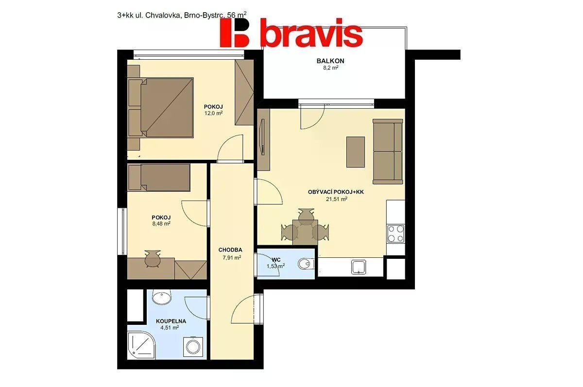 Hledáte komfortní v klidné části Brna s výbornou dostupností a skvělou občanskou vybaveností? Ve výhradním zastoupení majitele nabízíme k pronájmu krásný byt o dispozici 3+kk s užitnou plochou 56 m² a prostorným balkonem 8 m², který se nachází v 1. patře novostavby s výtahem v prestižním bytovém komplexu Pod Chvalovkou. Byt je částečně zařízený a nabízí pohodlí i praktické řešení pro každodenní život. Součástí pronájmu je plně vybavená kuchyňská linka včetně všech potřebných spotřebičů: lednice s mrazákem, elektrická trouba, myčka, digestoř, mikrovlnná trouba a indukční varná deska. Obývací část je připravena pro Vaše vlastní zařízení a disponuje přímým vstupem na prostorný balkon, kde si můžete užít ranní kávu i večerní relax. Další dva pokoje jsou nezařízené, což Vám dává volnost pro jejich vlastní využití a vybavení dle Vašich představ. Koupelna je útulná a praktická - najdete zde sprchový kout, umyvadlo s úložnou skříňkou, zrcadlo, přípojku na pračku a topný žebřík. Toaleta je oddělená, což zvyšuje komfort bydlení. K bytu dále náleží sklep pro uložení sezónních věcí a součástí pronájmu je i velmi žádané garážové stání. Bytový komplex Pod Chvalovkou je zasazen do příjemného prostředí v blízkosti přírody - můžete si užít procházky v oboře Holedná, u Žebětínského rybníka, na Brněnské přehradě, navštívit ZOO nebo historický Hrad Veveří. V okolí naleznete vše, co potřebujete ke spokojenému životu: supermarket Albert, restaurace, kavárny, zastávku MHD jen pár minut chůze od domu, stejně tak další důležité instituce a služby. Tento byt je ideální volbou pro ty, kdo hledají moderní, pohodlné a klidné bydlení s výbornou dostupností do centra Brna i přírody. Možnost zajištění jednorázového či pravidelného úklidu naší úklidovou firmou. Prohlídky jsou možné po domluvě s uvedeným makléřem.