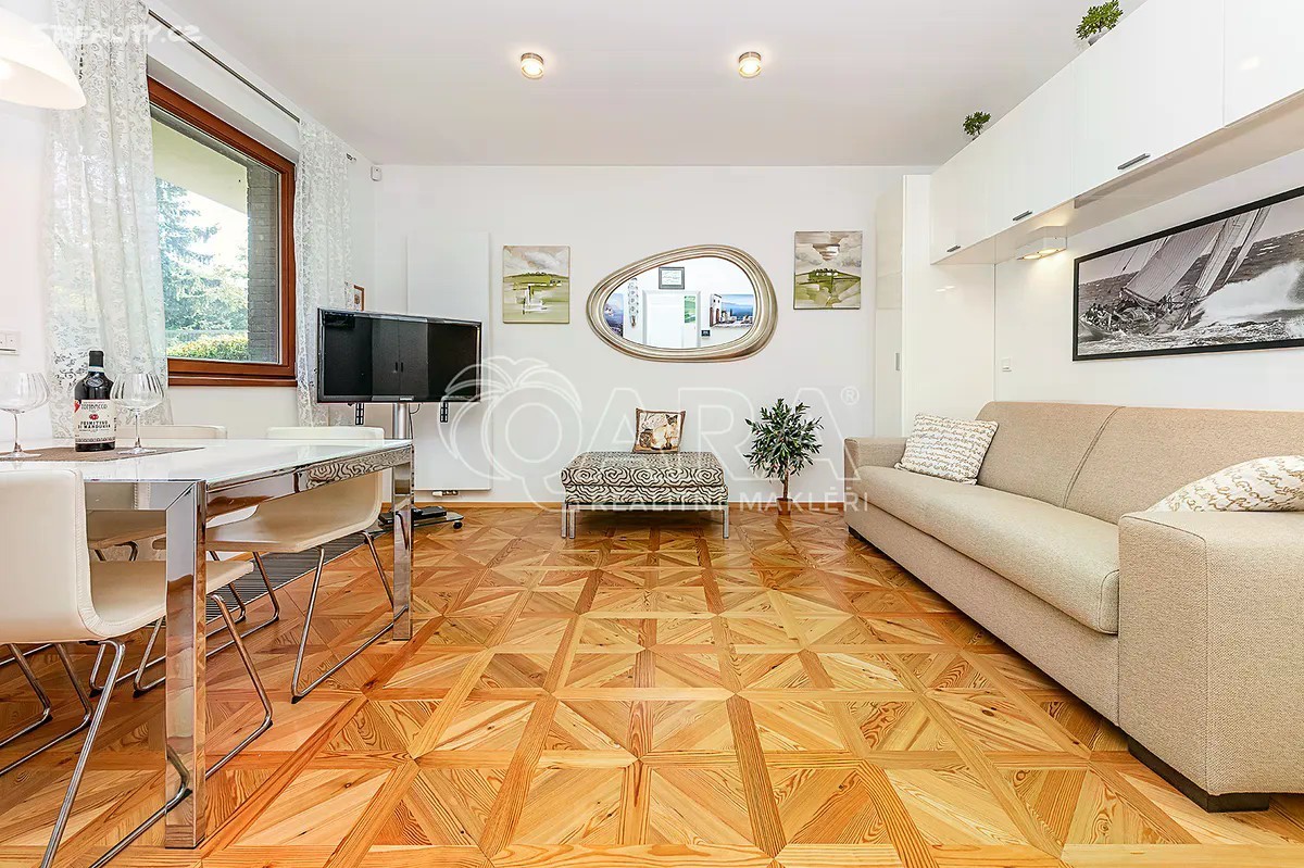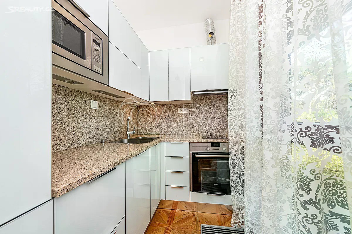 Exkluzivně nabízíme k prodeji nadstandardní byt o dispozici 1+kk s lodžií o celkové ploše 33,44 m2, situovaný ve 1. NP rezidenčního domu v prestižní a vyhledávané lokalitě Prahy 6 - Dejvice, v rezidenční čtvrti Baba. Dispozičně skvěle řešený byt tvoří prostorný obývací pokoj s plně vybaveným kuchyňským koutem, koupelna se sprchovým koutem, samostatnou toaletou a vstupní chodba s množstvím úložných prostor. Z loken všech se otevírá uklidňující výhled do okolní zeleně, kde je naprostý klid a harmonie. Interiér bytu je v nadstandardním provedení - dřevěné podlahy, podlahové vytápění v koupelně, bezpečnostní vstupní dveře s videotelefonem, interiérové dřevěné dveře značky Sapeli, vestavěné skříně a praktické úložné prostory. Kuchyňská linka je vybavena veškerými spotřebiči. Nábytek na fotkách je součásti ceny bytu. K bytu náleží také velký sklep o celkové rozměru 7,1m2 a parkovací stání pro auto v domě. Rezidenční dům je ve velmi dobrém technickém stavu, nachází se v klidné a bezpečné lokalitě. Společné prostory jsou čisté a udržované. Baba je jedna z nejatraktivnějších částí Prahy 6 - spojuje prestižní adresu, klid a přírodu s výbornou dostupností do centra města. V bezprostředním okolí se nachází lesnaté svahy Tiché Šárky, zřícenina Baba a množství zeleně. V docházkové vzdálenosti je kompletní občanská vybavenost - školy, školky, obchody, kavárny, sportovní i kulturní vyžití. Tato lokalita je vyhledávána pro svou atmosféru, bezpečí a vysokou kvalitu bydlení. Byt je v osobním vlastnictví a je vhodný i k financování hypotečním úvěrem. Rádi Vám zdarma pomůžeme zajistit výhodné financování.