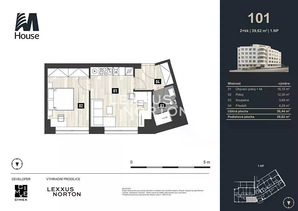 Exklusivní ubytovací jednotka 2+kk k prodeji v nově vznikajícím rezidenčním projektu M-House, který je synonymem pro komfort, funkčnost a moderní životní styl nedaleko Kubánského náměstí v pražských Vršovicích. Jednotka je navržena s důrazem na praktické a plnohodnotné využití prostoru a nachází se v 1. nadzemním podlaží. Ze vstupní chodby plynule přejdete do hlavní obytné části, která propojuje kuchyňský kout, obývací prostor a ložnicovou zónu. K dispozici je také moderní koupelna se sprchovým koutem a toaletou. Kvalitní vybavení a moderní technologie jsou samozřejmostí, což zaručuje maximální pohodlí a funkčnost. K jednotce je možné dokoupit parkovací stání a sklepní kóji. M-house se nachází na pomezí Vršovic a Vinohrad, jen kousek od Kubánského náměstí. Tato strategická poloha nabízí dokonalou rovnováhu mezi klidným bydlením a bohatou městskou vybaveností. Díky blízkosti hlavních dopravních tepen a zastávek MHD se snadno dostanete do centra Prahy i do jejích dalších částí. V okolí se nachází pestrá nabídka obchodů, supermarketů, mateřských i základních škol a zdravotnických zařízení. Gastronomičtí nadšenci zde najdou celou řadu kaváren, restaurací a bister. Milovníci přírody si zamilují park Ruth Bondyové, ideální pro relaxaci, procházky či pikniky, i nově vznikající park Drážní promenáda, inspirovaný světoznámou newyorskou High Line. Nedaleká sportovní a rekreační zařízení nabízejí široké spektrum aktivit pro všechny věkové skupiny - bazén, venkovní sportoviště, zimní stadion a Fortuna Arenu.