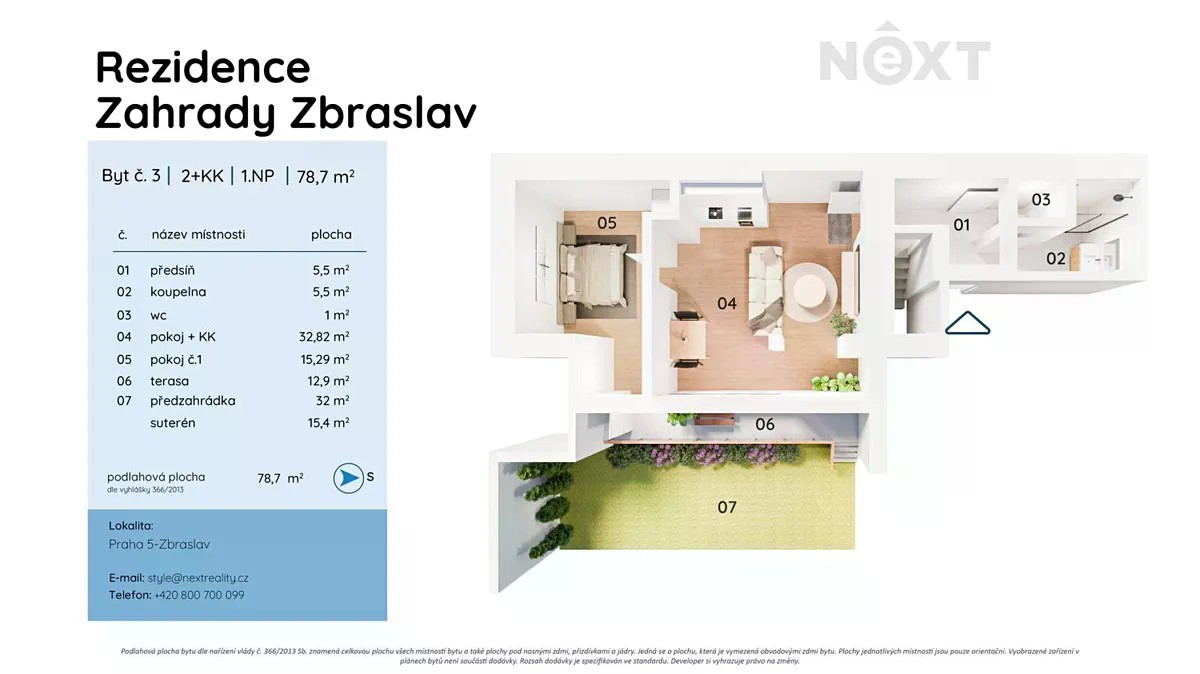 Prostorný byt 2+kk po kompletní rekonstrukci s terasou a předzahrádkou v klidné lokalitě. Součástí nabídky je parkovací stání, sklepní prostory a zahradní domek. Hledáte klidné bydlení s dostatkem prostoru a soukromí, ale zároveň v dosahu všeho potřebného? Nabízíme k prodeji světlý a moderní byt 2+kk o ploše 79 m² (včetně vinného sklepa o ploše 15 m2 exkluzivně přístupného přímo z jednotky) s terasou (13 m2) a předzahrádkou (32 m2), situovaný v 1. nadzemním podlaží kompletně zrekonstruovaného domu s výhledem do vnitrobloku v tiché rezidenční lokalitě. Dispozičně byt nabízí prostorný obývací pokoj s přípravou na kuchyňský kout, ložnici, koupelnu se sprchovým koutem, samostatnou toaletou a předsíň. Všechny místnosti jsou světlé a dobře řešené. Vchod na terasu je z obývacího pokoje, terasa navazuje na předzahrádku s východní orientací. Dům prošel celkovou rekonstrukcí - nové rozvody elektřiny, vody, nové vinylové podlahy, plastová okna s dvojskly, topení pomocí elektrických přímotopů, ohřev vody je zajištěn elektrickým bojlerem. Bytový dům je nedaleko centra Zbraslavi, což je klidná a vyhledávaná městská část na jihu Prahy, která kombinuje pohodové bydlení v zeleni s výbornou dostupností do centra metropole. Tato lokalita nabízí ideální zázemí pro rodiny s dětmi, seniory i všechny, kdo hledají únik od ruchu města, aniž by se museli vzdát výhod městského života. Oblast je obklopena přírodou - v blízkosti se nachází lesy, cyklostezky podél Vltavy, Zbraslavský zámek a oblíbená ZOO Zbraslav. K občanské vybavenosti patří školky, školy, lékařská zařízení, pošta, obchody, restaurace a sportovní areály. Velkou výhodou je také rychlé spojení do centra Prahy - autem, MHD i vlakem (např. z nádraží Zbraslav nebo přes autobusové spojení na metro Smíchovské nádraží). Vhodné pro jednotlivce, pár i menší rodinu. Ideální i jako investice. Pro komunikaci uvádějte evidenční číslo zakázky N113000.