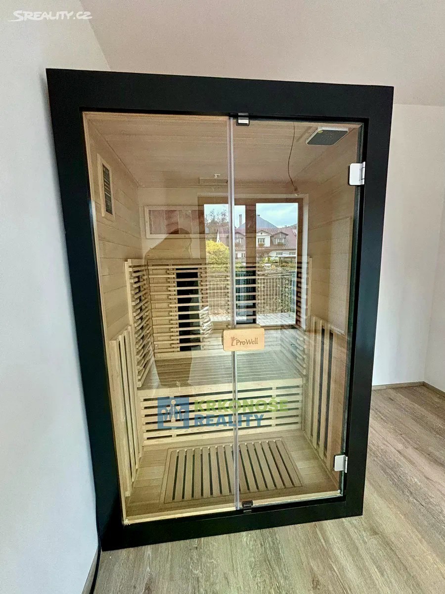 Představte si. Po krásné lyžovačce nebo dlouhé procházce po krkonošských hřebenech se vracíte do svého útulného apartmánu. Zapnete infrasaunu přímo v ložnici, uvolníte tělo i mysl. Pak jen pár kroků na terasu s výhledem na řeku Labe, kde slyšíte její šumění a cítíte klid. Klid, pohodu, hory. Můžete si to představit? Teď si to můžete i dopřát napořád. Nabízíme k prodeji moderní apartmán ve Vrchlabí • Dispozice 2+kk, celková výměra 45,5 m² • Velká terasa s výhledem na řeku Labe • Nová design infrasauna přímo v ložnici s přímým vstupem na terasu ( lze dokoupit) • Nová kuchyňská linka z kvalitních materiálů včetně spotřebičů (varná deska, digestoř) • Moderní koupelna s WC • Vytápění radiátory s měřiči tepla Komfort a dostupnost • Možnost parkovacího místa přímo u domu - za elektrickou branou (přednost bude mít zájemce o koupi apt.včetně tohoto místa) • Skvělá dostupnost - blízko centra města i přírody Krkonoš • V okolí skibus, restaurace, cyklostezky a turistické trasy Vhodné pro: • Trvalé bydlení • Rekreační účely - vaše soukromá horská oáza • Investici - pronájem turistům v oblíbené lokalitě Klid, výhled, šumění Labe. Místo, kde se budete cítit v rovnováze. Stačí se jen nadechnout - a nechat hory, aby se postaraly o zbytek.