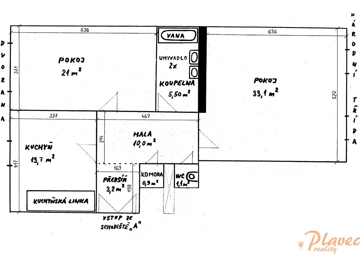 Nabízíme pronájem hezkého bytu o velikosti 2+1 ve vyhledávané oblasti na ulici Národní, Praha - Staré Město, pasáž Palác Metro. Byt je prostorný, o rozloze 88,3 m2. Nachází se ve 4. patře cihlového domu s výtahem. Vytápění i ohřev vody jsou centrální. Byt je vybavený dle fotografií, pouze kuchyňskou linkou se sklokeramickou deskou, elektrickou troubou, digestoří, dřez s odkapávačem, myčkou. V domě je nepřetržitá ochrana celého domu bezpečnostní agenturou. Dispozice: předsíň (3,2 m2), hala (10 m2), kuchyň (13,7 m2), ložnice (21 m2) orientována do vnitrobloku, obývací pokoj (33,1 m2) orientován do ulice, koupelna s vanou a 2 umyvadly (5,5 m2), toaleta (1,1 m2), komora (0,9 m2). Parkování je možné na ulici (v zóně). Cca 2 minuty chůzí od domu je tramvajová zastávka a 5 minut zastávka na Metro. Dále v blízkém okolí je velmi dobrá občanská vybavenost: restaurace, lékárna, potraviny, Národní divadlo, Park, a další. Pronájem je volný ihned. Energetická třída G je uvedena z důvodu, že zatím nebyl vypracován Energetický štítek domu (PENB).