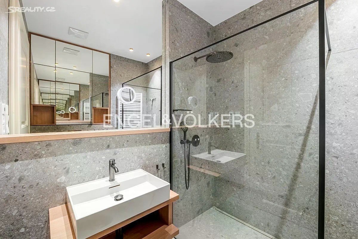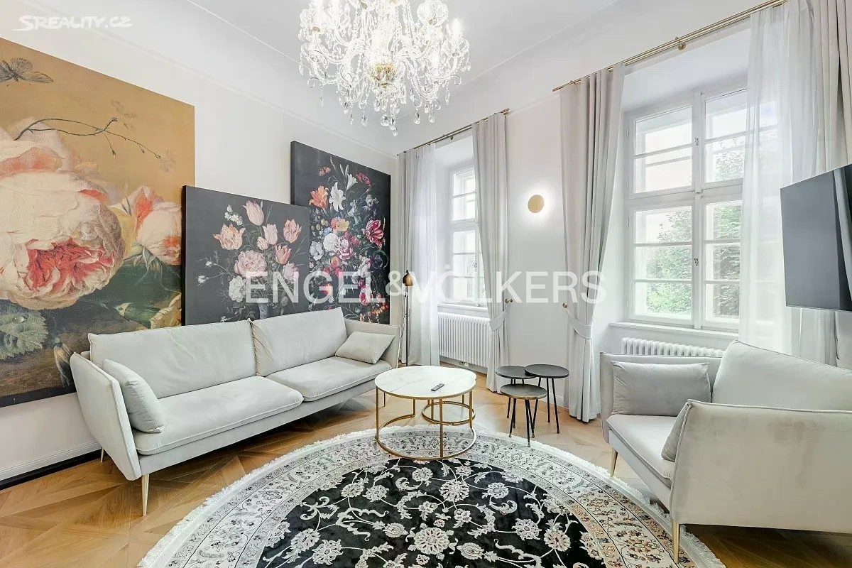 K pronájmu nabízíme plně zařízený elegantní byt 4+kk v prvním patře historického Pinkasova paláce na Malé Straně, jen pár kroků od Vltavy a Karlova mostu. Apartmán prošel kompletní rekonstrukcí a splňuje vysoký standard bydlení v jedné z nejžádanějších lokalit v Praze. Dispozici tvoří prostorný obývací pokoj s výhledem na řeku, samostatná kuchyně vybavená všemi spotřebiči, samostatná jídelna, tři ložnice - každá s vlastní en-suite koupelnou (dvě se sprchovým koutem a toaletou, jedna s vanou, sprchovým koutem a toaletou) a vstupní hala. Byt je vybaven klimatizací, dřevěnými podlahami a elektronicky ovládanými roletami. Unikátní poloha přímo na Kampě zajišťuje výjimečnou atmosféru a zároveň skvělou dostupnost do centra města i na druhý břeh Vltavy. V těsné blízkosti se nachází stylové kavárny, restaurace, parky i historické památky. Měsíční poplatky činí 22 554 Kč. Zájemce je srozuměn s provizí realitní kanceláře ve výši jednoho měsíčního nájmu + DPH.