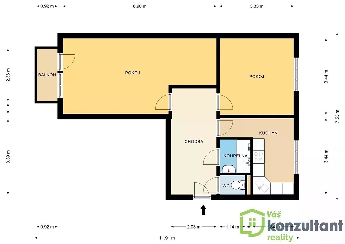 Prodej bytu 2+1 s balkonem, 55 m² - Jihlava, ulice U Pivovaru Nabízíme k prodeji velmi světlý a vzdušný byt 2+1 s nikou a balkonem, který se nachází ve 3. patře (4. NP) osmipodlažního panelového domu s novým výtahem v oblíbené a tiché části Jihlavy, na ulici U Pivovaru. Byt o celkové ploše 55 m² působí příjemně útulným dojmem a potěší nejen svou praktickou dispozicí a výhledem do zeleně, ale také neprůchozími pokoji, které zajišťují naprosté soukromí a klid. Díky své poloze, klidnému okolí a blízkosti Vysoké školy polytechnické (pouhých 5 minut chůze) je byt zároveň skvělou investiční příležitostí - ideální jak pro vlastní bydlení, tak k pronájmu studentům či mladým párům. Byt má prakticky řešenou dispozici, která nabízí dostatek prostoru i soukromí. Vstupní předsíň (7,8 m²) poskytuje místo pro vestavěné skříně a úložné prostory, z níž se vstupuje do všech místností - díky tomu jsou oba pokoje neprůchozí. Kuchyň (9,1 m²) se samostatnou komorou (0,3 m²) nabízí výhled do zeleně a dostatek prostoru pro jídelní stůl. Obývací pokoj s nikou (21,4 m²) působí vzdušně a lze jej snadno rozdělit na obývací a pracovní zónu. Ložnice (12,6 m²) má přímý vstup na balkon (3,2 m²), odkud je příjemný výhled do okolí. Koupelna s vanou (2,1 m²) a samostatné WC (1 m²) doplňují celkově pohodlné uspořádání bytu. K jednotce náleží také sklep (1,1 m²) umístěný v přízemí domu. Byt je vyklizený, čerstvě vymalovaný a připravený k okamžitému využití nebo rekonstrukci podle vašich představ. V pokojích jsou zachovalé dřevěné parkety, v kuchyni a předsíni plovoucí podlaha. Jsou zde nová plastová okna a plyn je doveden až do bytu - využívá se pro vaření. Kuchyňská linka je vybavena plynovou varnou deskou a elektrickou troubou. Dům je kompletně zrevitalizovaný - má zateplenou fasádu s novým nátěrem, nový výtah, nové stupačky a je spravován aktivním společenstvím vlastníků bez úvěrů, což zaručuje stabilní a bezproblémové hospodaření. Měsíční náklady na bydlení činí přibližně 5.300 Kč včetně fondu oprav, vytápění a vody + zálohy na elektřinu a plyn. Okolí domu tvoří rozsáhlé travnaté plochy a vzrostlé stromy, které vytvářejí klidnou a příjemnou atmosféru. Parkování je možné přímo u domu v rámci rezidentní zóny. Lokalita nabízí vynikající občanskou vybavenost - v pěší vzdálenosti se nachází škola, školka, potraviny, autobusové nádraží, nová multifunkční hala i samotné centrum města. Do 15 minut chůze dojdete také ke zdravotnímu středisku nebo na vlakové nádraží. Energetická náročnost budovy: třída C - úsporná. V případě zájmu vám rádi pomůžeme i se zajištěním vhodného financování - spolupracujeme s prověřenými hypotečními poradci a bankami, kteří vám připraví nabídku přesně podle vašich možností a představ. Těšíme se na vaši prohlídku!