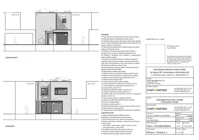 Rezidence Sobín Dům RD 02 (Typ B) Exkluzivní nabídka 6 moderních řadových domů 4+kk v rámci projektu Rezidence Sobín - nového obytného souboru na západním okraji Prahy. Každý dům nabízí vlastní zahradu, garáž, venkovní parkovací stání a energeticky úsporné technologie pro moderní a pohodlné bydlení. Celý projekt zahrnuje 6 rodinných domů navržených v jednotném architektonickém stylu, který kombinuje čisté linie, funkční dispozice a prvky přírodních materiálů. Rezidence Sobín představuje propojení městského komfortu s klidem přírody - ideální volbu pro rodiny, které hledají vyvážený životní styl v zeleni, ale stále v dosahu centra Prahy. O projektu V rámci první etapy výstavby je nyní k rezervaci 6 řadových domů o dispozici 4+kk, s různými výměrami pozemků a garáží. Domy jsou nabízeny ve fázi před zahájením výstavby - s možností úprav dle přání budoucích majitelů. Architektonický návrh vychází z vesnické struktury Sobína a přirozeně na ni navazuje moderním, minimalistickým stylem. Každý dům má dvě nadzemní podlaží, vlastní zahradu, garáž a venkovní stání. Dispozice: 4+kk Užitná plocha: 120,6 m² Pozemek: 354,5 m² Garáž: 18,9 m² Cena: 16 000 000 Kč (vč. DPH) 1. NP: zádveří, prostorný obývací pokoj s kuchyní a vstupem na terasou a zahradu, koupelna, technická místnost, garáž. 2. NP: chodba, dvě ložnice, hlavní ložnice s vlastní koupelnou, další koupelna s vanou. ⚙️ Standard a technologie Tepelné čerpadlo vzduch-voda s integrovaným zásobníkem TUV Podlahové vytápění v celém domě Rekuperační jednotka pro zdravé vnitřní prostředí Příprava pro fotovoltaické panely (s možností rozšíření) Příprava pro nabíjecí stanici elektromobilu Retenční nádrž na dešťovou vodu pro závlahu zahrady Zahradní pergola a oplocení v ceně ⚡ Technické údaje Celkový instalovaný příkon: 26,2 kW Soudobý příkon: 14,94 kW Hlavní jistič: 3×25 A (400 V - třífázové napojení) Dostačující pro běžný provoz domu i dobíjení elektromobilu (Wallbox až 11 kW bez navýšení jističe). Lokalita Sobín Sobín je součástí Prahy-Zličína a patří k nejvyhledávanějším pražským rezidenčním oblastem. Spojuje venkovský charakter a přírodu s výbornou dostupností do centra: Auto: napojení na Pražský okruh a D5 MHD: autobusy na metro B - Zličín Vlak: zastávka Praha-Zličín - Smíchovské nádraží Cyklostezka A15 prochází kolem projektu Okolí nabízí školu, školku, obchody, restaurace a přírodní park Hostivické rybníky. ️Architektura a urbanismus Soubor domů je řešen v duchu soudobé architektury s přirozeným napojením na stávající zástavbu. Nepravidelné řazení a zrcadlení typů domů vytváří živou siluetu a zachovává soukromí. Materiálové řešení v kombinaci cihelných pásků a modřínových obkladů dodává projektu útulnost a časovou trvanlivost. Rezidence Sobín je výjimečná příležitost pro ty, kdo hledají moderní, energeticky úsporné a architektonicky čisté bydlení v přírodním prostředí s výbornou dostupností do centra Prahy. Pro více informací a dokumentaci projektu nás neváhejte kontaktovat.
