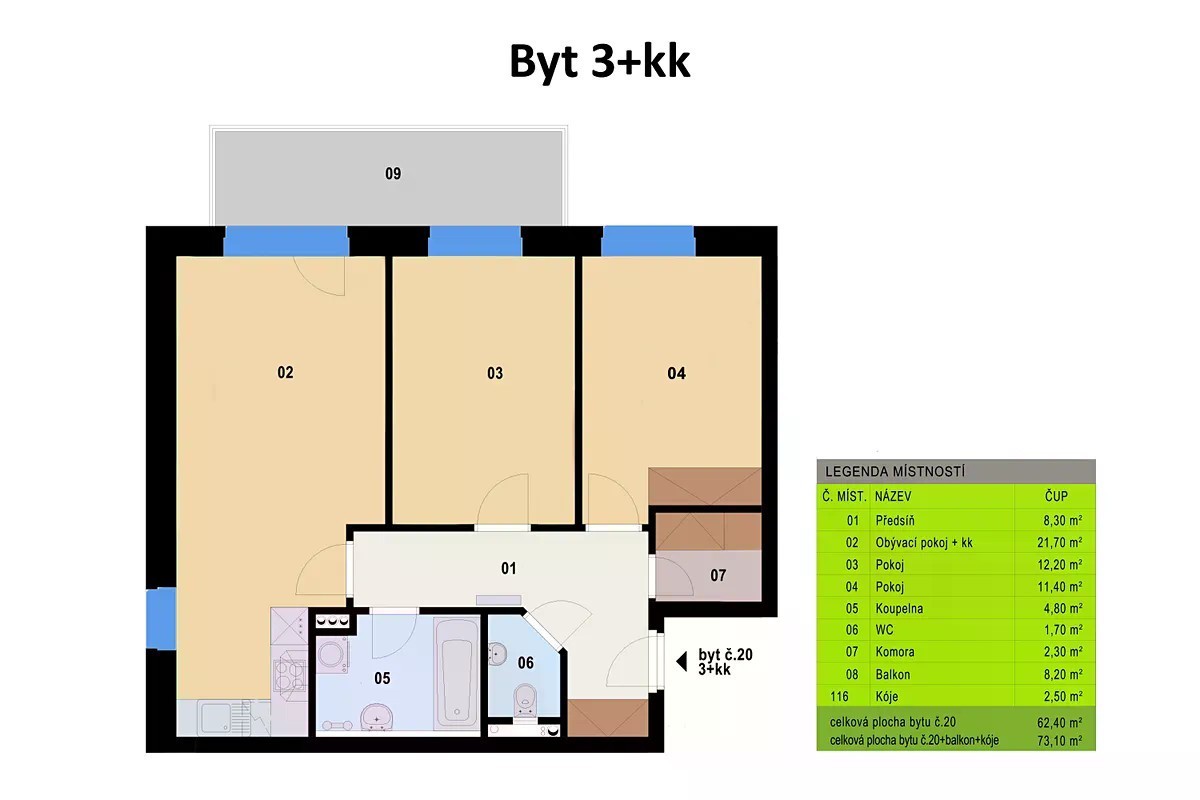 Pronájem bytu 3+kk, ve třetím patře cihlového domu - novostavby. Dispozičně nabízí prostorný obývací pokoj s kuchyňským koutem, ložnici, pokoj, koupelnu s vanou, samostatné WC, předsíň, komoru, balkón. K užívání bytu náleží i garážové stání a sklepní kóje. Byt je částečně vybavený kuchyňskou linkou s vestavěnými spotřebiči a vestavěnou skříní. V bytě je možné připojení internetu a kabelové televize bezdrátovou 5G sítí. V okolí domu je kompletní občanská vybavenost. Další parkování je veřejné před domem. Zastávka MHD Nymburk je u domu. Pro další informace a domluvení prohlídky kontaktujte makléře.