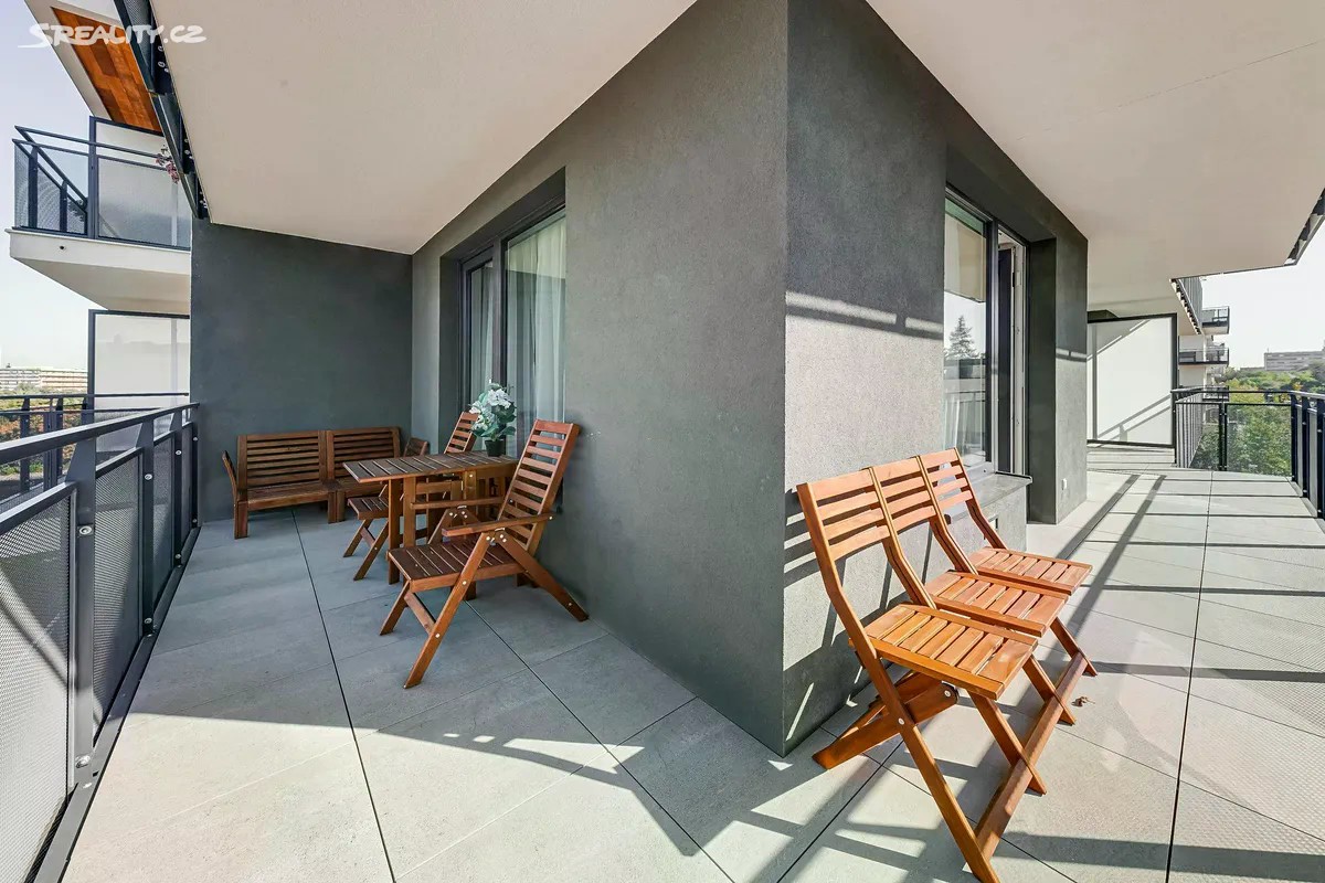 Nabízím krásný, světlý a prostorný byt 4kk s balkony, sklepem a garážovým stáním. Byt disponuje celkovou podlahovou plochou 107m2 a dvěma balkóny o velikosti 29m2 a 7m2. V bytě jsou použity kvalitní materiály a je technicky i dispozičně velmi dobře řešen. Třída energetické náročnosti budovy je B - Velmi úsporná. Byt se nachází v klidné lokalitě s velmi dobrou dopravní dostupností do centra, zastávka MHD se spojením na metro je cca minutu chůze. V okolí je veškerá občanská vybavenost - MŠ, ZŠ, sportoviště, restaurace, obchody s potravinami. Vhodné pro rodinu s dětmi. Připraveno k nastěhování.