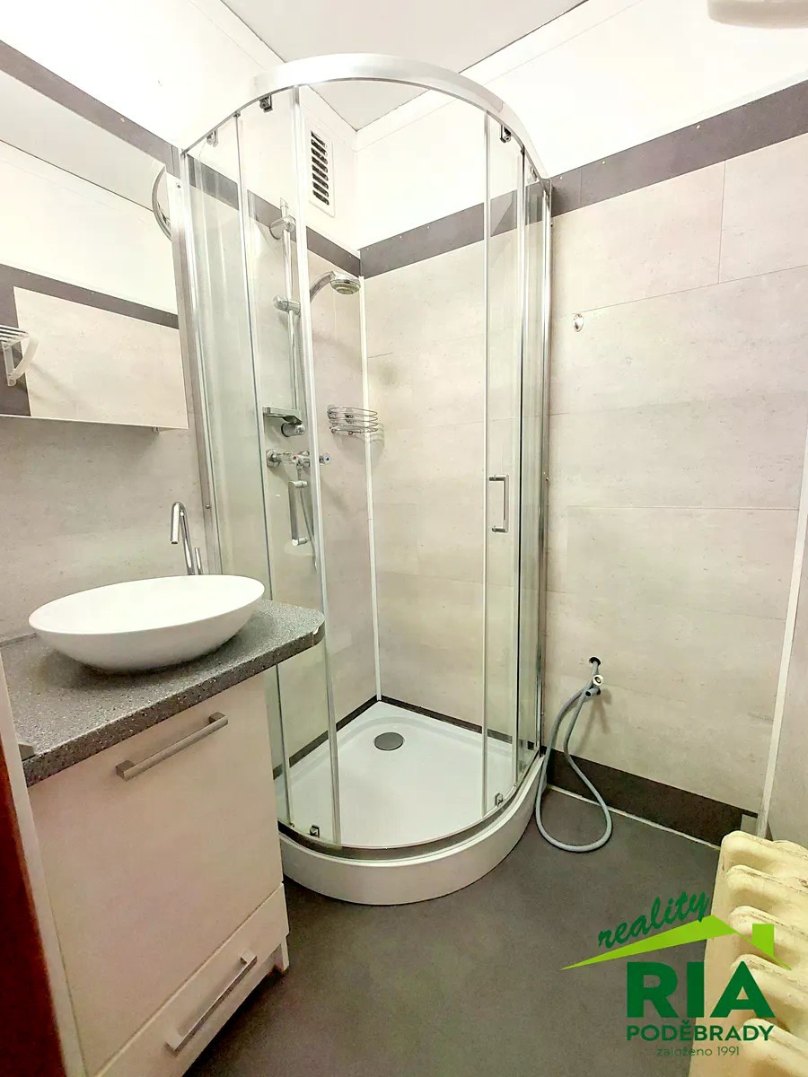 Poděbrady - pronájem bytu 1+1 o celkové ploše cca 30m2, který se nachází ve 4. patře bez výtahu v bytovém domě v těsné blízkosti lázeňské kolonády, vlakového a autobusového nádraží. Disp: předsíň, obývací pokoj, kuchyň, koupelna se sprchovým koutem, samostatné WC. K bytu náleží z části zděná sklepní kóje. Byt je nezařízený pouze nová kuchyňská linka. V současné době se byt kompletně maluje a pokládá se nová podlaha v obývacím pokoji. Možnost parkování přímo proti domu. Byt je volný od 15.10.2025. Nájemné činí 9.000,-Kč + poplatky 2.794,-Kč + elektrika s přepisem na klienta, 1x kauce, 1x provize RK. Požadavky: solventní plátce bez dluhů a exekucí.