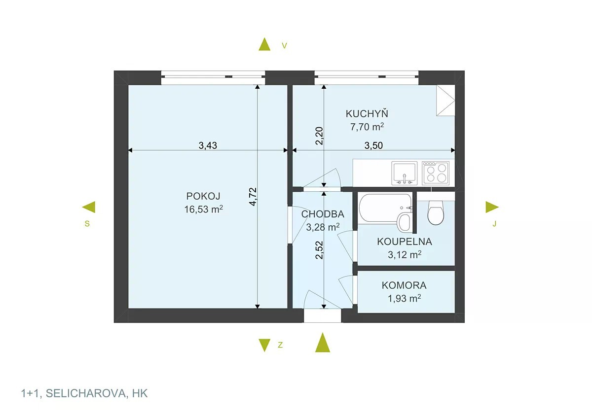 Pronájem bytu 1+1 32 m² Selicharova, Hradec Králové - Nový Hradec Králové