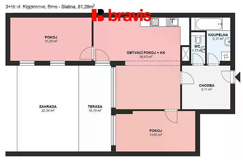 Ve výhradním zastoupení majitele nabízíme pronájem bytu 3+kk na ulici Kigginsova, Brno - Slatina. Jedná se o cihlový, sedmipodlažní, bytový dům z roku 2015, v nově vzniklé části Brno - Slatina, v těsné blízkosti občanské vybavenosti - park, dětské hřiště, nákupní a obchodní centrum Kaufland a Lidl, lékárna, dětský zábavní park BRuNO family park, benzínové pumpy, bankomaty, zastávky MHD. Nedaleko se nachází i slatinské náměstí s množstvím restaurací a kaváren. Nabízený byt je pěkný, prostorný, s výhledem do parku, velmi zajímavý dispozičně. Díky svému umístění a poloze je ideální pro firemní pracovníky, případně rodiny s dětmi. Je umístěný v přízemí domu, součástí je venkovní terasa 10,2 m2 a zahrádka 22,3 m2. K bytu náleží vyhrazené garážové stání, venkovní vyhrazené parkování, sklep umístěný vedle garážového parkovacího stání a uzamykatelná kočárkárna na patře. Byt je bezbariérový, výtah vede až do podzemní garáže. Podlahy - plovoucí dřevěné, dlažba. Okna - dřevěná se žaluziemi. Orientace oken a zahrady - Z. Byt je nabízený částečně zařízený - kuchyňská linka s vestavěnými spotřebiči (sklokeramická varná deska, multifunkční trouba, myčka nádobí, digestoř, lednice s mrazákem). Výměry místností: obývací pokoj s kuchyňským koutem 30,63 m2, ložnice 15,29 + 13,65 m2, koupelna s vanou, umyvadlem a připojením na pračku 5,17 m2, samostatná toaleta 1,73 m2, předsíň 9,11 m2. Možnost připojení internetu a kabelové televize. K dispozici 12/2025. Možnost zajištění jednorázového či pravidelného úklidu naší úklidovou firmou. Pro další informace a žádost o prohlídku kontaktujte níže uvedeného makléře. Doporučujeme.