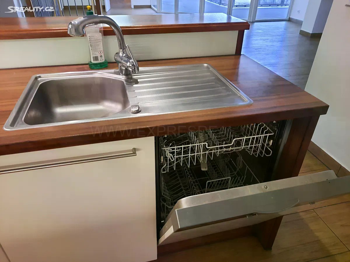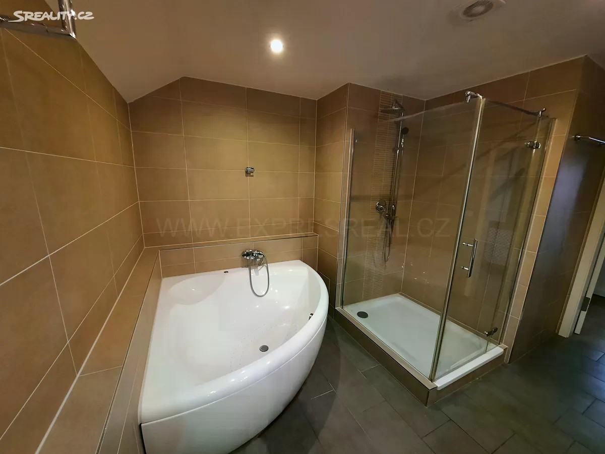 Nabízíme k pronájmu nadstandardní prostorný byt o dispozici 3+kk a CP 159m2 ve vyhledávané lokalitě nedaleko centra v Brně, umístěné ve 4. NP s velkou garáží 29,8m2, výtahem a terasou 55m2. Byt sestává z velmi prostorného otevřeného obývacího pokoje s kuch.koutem 74m2, kuchyňská linka včetně elektrospotřebičů, sklokeramická deska, horkovzdušná trouba, digestoř, myčka a dvou samostatných pokojů 23m2, 10m2 a velké šatny 8m2 s možností využití jako další 4 pokoj. V zázemí se nacházejí 2 skladové prostory, jeden na potraviny, druhý jako menší prádelna. Prostorná koupelna s rohovou hydromasážní vanou a sprchovým koutem a 2 umyvadly, WC zvlášť. Nemovitost je propojena schodištěm se vstupem z 3.NP jako mezonet. Výtápění dálkovým ústředním topením, klimatizace, zabezpečení. V celém bytě jsou instalovány žaluzie a klimatizační jednotky. Dům je opatřen elektrickou branou a vjezdem do vnitrobloku, vše na dálkové ovládání. Velkou výhodou je garáž ve dvorním traktu s vraty, také na dálkové ovládání. Nemovitost vzhledem ke svojí poloze v blízkosti centra Brna vhodná jak k bydlení, tak i podnikání. Měsíční nájemné činí 25.000 Kč + zálohy na služby a energie.