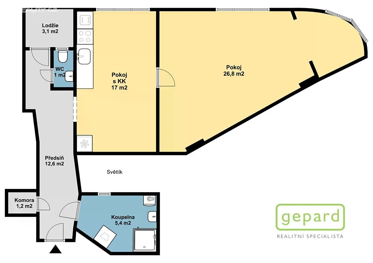 Společnost Gepard Reality nabízí ke koupi do osobního vlastnictví prostorný a velmi pěkně zrekonstruovaný byt o dispozici 2+kk v městské části Praha 8 - Libeň, v ulici U libeňského pivovaru - na klidném místě v zeleni u Rokytky a zároveň v blízkosti MHD. Byt se nachází ve 2. patře historického bytového domu. Celý dům prošel postupně rekonstrukcí: nový střešní plášť, fasáda (z vnitrobloku včetně zateplení), plastová okna, rozvody elektřiny a stoupačky. Plocha nabízené bytové jednotky je 64,00 m2, k bytu navíc přísluší lodžie (3,10 m2) a sklepní kóje (4,00 m2). Byt je nabízen včetně vybavení znázorněného na fotografiích: kuchyňská linka s el. troubou, indukční deskou, myčkou, lednicí s mrazákem, dřevěný rozkládací stůl + židle, předsíňová stěna atd. Lodžie a okna pokojů jsou orientována na sever a východ a nabízejí příjemný výhled do zeleně. V bytě je světlý rohový pokoj (26,80 m2) s výklenkem a velkými okny, pokoj s kuchyňským koutem (17,00 m2 - tento pokoj je průchozí), chodba (12,60 m2), koupelna (5,40 m2) se sprchovým koutem, WC (1,00 m2), komora (1,20 m2) a lodžie (přístupná z chodby bytu). Vytápění a ohřev vody (mimo kuchyň) je zajištěn plynovým kotlem, v kuchyni je průtokový ohřívač. Ve vnitrobloku je příjemná společná zahrada s možností posezení. Veškeré služby jsou k dispozici v blízkém okolí. Zastávka tramvaje je vzdálena asi 3 minuty chůze, zastávka metra B Palmovka je zhruba 10 minut pěšky. Obchody a restaurace jsou v okolí Palmovky. Přímo u domu vede údolím Rokytky cyklostezka z Hloubětína přes ZOO v Troji do Roztok u Prahy, dále je zde Park u Rokytky a dětské hřiště s lezeckou stěnou Rokytka. Byt je nyní pronajat za tržní nájemné na dobu určitou do 31.8.2026. Pro více informací či domluvení termínu prohlídky mne, prosím, kontaktujte.