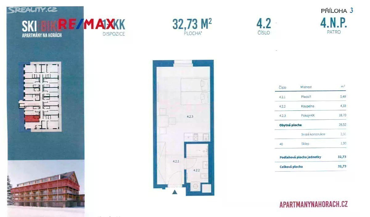 Nabízíme k prodeji moderní a luxusně vybavený apartmán 1+kk o celkové ploše 32,73 m² v developerském projektu Ski&Bike Apartmány Siréna na horách v Janských Lázních. Jednotka se nachází ve 4. nadzemním podlaží domu s výtahem, s krásným výhledem do zeleně. Součástí domu je lyžárna s vlastní uzamykatelnou kójí a také vlastní sklepní kóje s bytelnými, zakrytými dveřmi. Apartmán je plně vybavený a připravený k okamžitému užívání nebo k investici do krátkodobých pronájmů. VYBAVENÍ BYTU Majitel ponechává veškeré vybavení, které bylo pečlivě sladěno s horským charakterem apartmánu: *kuchyňská linka na míru s myčkou, sklokeramickou deskou, troubou kombinovanou s grilem i mikrovlnkou, lednicí a dřezem *kombinovaná pračka se sušičkou *jídelní stůl se židlemi *nově bude dodán rozkládací gauč (výměna za současný, velmi podobný design) *konferenční stolek *rozkládací multifunkční skříň, která v sobě kombinuje pracovní stůl a výklopnou postel *televize s elektrickým „krbem“ / efektem ohně pod TV, který navozuje útulnou atmosféru *vestavěné skříně v předsíni i v koupelně *kvalitní podlahy, omyvatelná tapeta v chodbě ENERGETICKÁ NÁROČNOST Dům má energetický štítek B - velmi úsporná budova. VLASTNÍ PARKOVACÍ STÁNÍ Možnost dokoupení parkovacího stání (v přípravě). LOKALITA Apartmán se nachází v klidné části Janských Lázní, v blízkosti lanovky na Černou horu, v nádherném prostředí Krkonošského národního parku. V okolí naleznete: *sjezdovky, běžecké tratě, cyklostezky *termální lázně, wellness, bazén *restaurace, kavárny, obchody a služby v docházkové vzdálenosti *ideální dopravní dostupnost z Prahy (cca 2 hodiny jízdy) Ideální pro: *rekreační bydlení *krátkodobé pronájmy (Airbnb, Booking) *investici do stabilního výnosu v atraktivní horské lokalitě V případě zájmu o bližší informace a o prohlídku nás neváhejte kontaktovat.