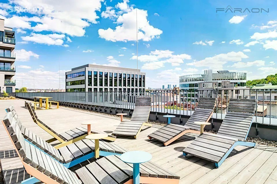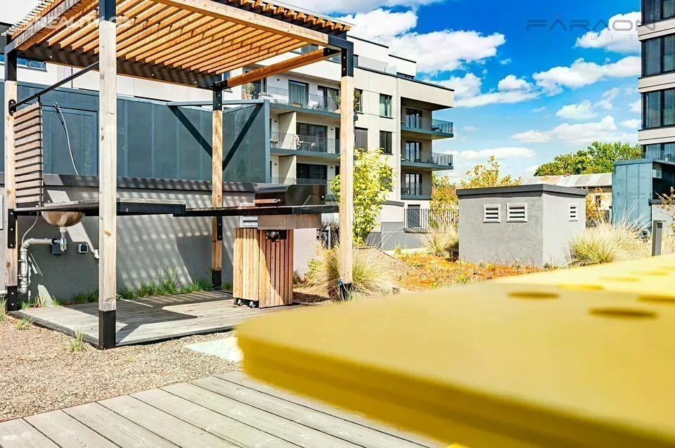 Pronájem zcela nového, nízkoenergetického (B) s rekuperací, vybaveného rohového bytu 3+kk ve 3. poschodí s krásným výhledem, s parkovacím místem a sklepem v ceně nájmu, s možností využívání střešní terasy s neopakovatelnými výhledy na Prahu a s místem pro relaxaci, či barbecue s přáteli, v moderním nadčasovém pojetí v novostavbě Rezidence Neugraf s wellnessem, v klidné rezidenční čtvrti oblíbeného Smíchova, přesto pár minut od centra. Unikátní poloha rezidence Neugraf v ulici Grafická na Smíchově nabízí pestrou občanskou vybavenost - restaurace, trendy bistra, bary obchody na dosah, nechybí divadla, kavárny, hudební kluby a jim podobná zařízení. Spojovací lávka přímo z obchodního centra Nový Smíchov vede do parku Sarcé Coeur, přes který dojdete až do NEUGRAFu. Umístění Rezidence Neugraf zajišťuje mimořádně výhodné dopravní spojení a napojení ve všech segmentech dopravy (metro, tramvaj, bus, napojení na Pražský okruh, výjezd na letiště Václava Havla apod.). Projekt Neugraf přináší koncept moderního, evropského bydlení. Základem je moderní uzavřený areál, jehož součástí je dvoupatrová recepce a nepřetržitá ostraha objektu. Neugraf v sobě ukrývá spojení stylové architektury s novodobými bytovými prvky, jejichž součástí jsou prostorné a velké střešní terasy plné zeleně s unikátními výhledy na panorama Prahy s možností letního posezení, případně místem pro barbecue s přáteli, kde každý den zapadá slunce nad Prahou, a kde najdete vnitřní klid v rušném městě. Celý projekt se nese v syrové eleganci navazující na industriální minulost budovy. Dispozice moderního bytu 3kk zahrnuje otevřený koncept obývacího pokoje, jídelny a kuchyňského koutu, dvě ložnice, dvě koupelny, velkorysou vstupní chodbu, v ceně parkovací místo přímo v budově přístupné výtahem a sklep. Kompletní vybavení dle fotodokumentace - kuchyňská linka vybavená zcela novými kvalitními spotřebiči, dubová podlaha, jídelní stůl, židle, sofa, TV, velkorysá, velkoformátová dřevěná okna s izolačními trojskly, elegantní dveře, moderní koupelny s velkoformátovými obklady a keramickou matnou dlažbou a nábytkem na míru, dřevěné plné, bezfalcové dveře, jednokřídlé bezpečnostní vstupní dveře, rekuperace, ovládání domácnosti přes LCD panel, kamerový zabezpečovací systém napojený na recepci objektu, bytový videotelefon. Cena nájmu zahrnuje parkovací stání s možností dobíjení elektromobilu, 24/h recepce s ostrahou, soukromé wellness, terasovitá střecha, vnitřní zahrada plná zeleně, kavárna, společná prádelna a coworkingové centrum. Měsíční poplatky 6 900 Kč - zahrnují vytápění, vodné a stočné, parkovací stání, ostrahu 24/7 a recepci, užívání terasy, společné energie a odvoz odpadu. Elektřina se hradí samostatně dle skutečné spotřeby nájemce. K dispozici od 3.11.2025 Energetická náročnost budovy B: