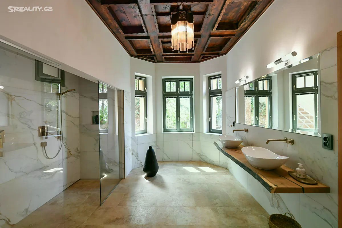 Chcete bydlet v domě nad řekou, kde si můžete užívat klid, ale stejně tak hostit přátele nebo uspořádat svatbu vašich dětí? V exkluzivní m zastoupení majitele bychom vám rádi nabídli skutečně jedinečnou vilu nad řekou, která spojuje historický šarm s moderním komfortem.Prostory domu vás nadchnou svou variabilitou a promyšleným řešením. Hlavní obytná místnost o rozloze 117 m² je srdcem domu, místem pro nevšední zážitky, poskytuje každodenní komfort, je ideální i pro rodinné oslavy, večírky, setkávání s přáteli i soustředěné obchodní jednání. V prvním nadzemní podlaží najdete kromě hlavního obytného prostoru zcela oddělenou soukromou ložnici s vlastním obývacím pokojem, šatnou, koupelnou s dřevěným kazetovým stropem, vstupní halou a samostatnou toaletou, čímž vzniká ideální zóna pro odpočinek a soukromí. O patro výš jsou 3 menší ložnice, koupelna s toaletou a opakuje se zde i vstupní prostor se samostatnou toaletou. Podkroví lze využít jako multifunkční prostor, bydlení personálu vily nebo dospívajícího potomka. Dům disponuje prostornou garáží o výměře 80 m², dostatečně velkou na parkování až 4 automobilů. Majitel, stavitel a designér v jedné osobě, pečlivě zkombinoval historické dispozice z roku 1918 s rozsáhlou a zdařilou moderní přístavbou, čímž vznikla vize skutečně nadstandardní rezidence. Využití moderních technologií jako jsou tepelná čerpadla vzduchvoda, zajišťují nízké provozní náklady, ale i ekologickou udržitelnost. Tato vila není jen domovem. Je to výjimečný životní styl v zajímavé lokalitě s výhledem na řeku, který vás každý den inspiruje a nabízí pohodlí domova, soukromí i luxus. Zbraslav nabízí ideální kombinaci života ve městě s přírodou na dosah. Jste u řeky, obklopeni zelení ale centrum Prahy je autem či MHD vzdálené pouhých 25 minut. Cyklostezky, běžecké trasy, vodní sporty, turistika - všechno máte doslova za domem. Můžete zde žít životním stylem, který podporuje klid, aktivní pohyb a regeneraci. Zbraslav si zachovává „maloměstský“ ráz - lidé se tu znají, fungují tu lokální trhy, kavárny, galerie i spolky. Zbraslavský zámek, barokní kostely, galerie, kulturní akce - i milovníci kultury si tu mohou přijít na své. Výborné spojení do centra - autobus na Smíchovské nádraží, napojení na Pražský okruh i D4. V místě je škola, školka, pošta, lékárna, obchody i zdravotní středisko. Neváhejte a domluvte si prohlídku - rádi vám dům osobně představíme a provedem vás celým procesem koupě.