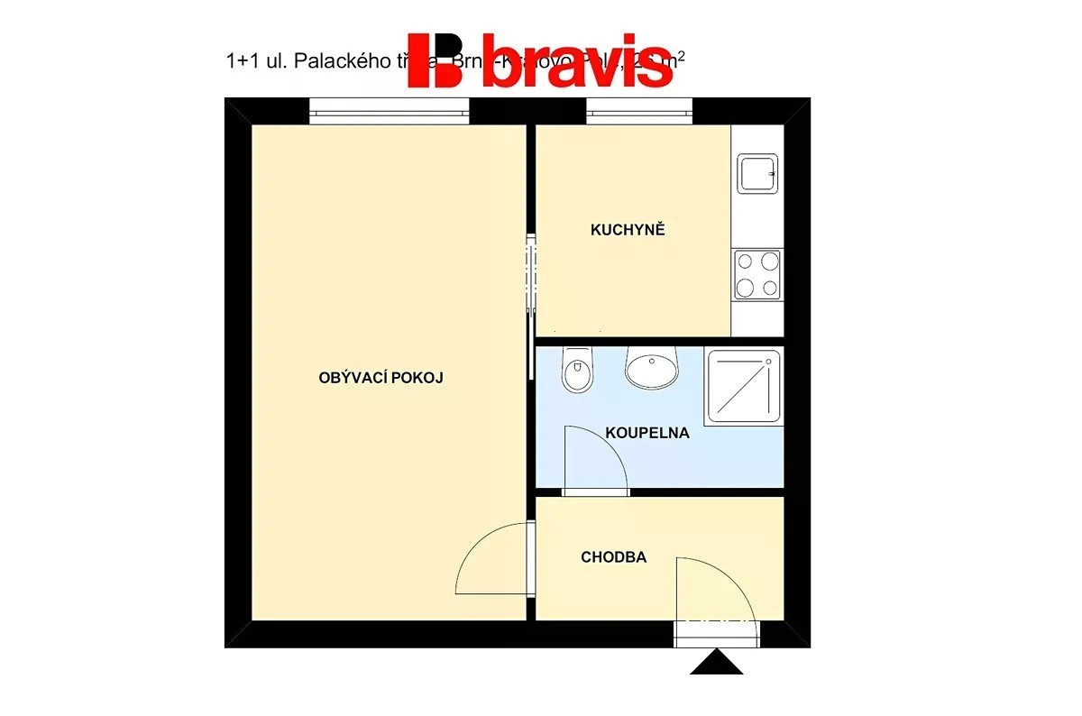 Pronájem bytu 1+1 26 m² Palackého třída, Brno - Královo Pole