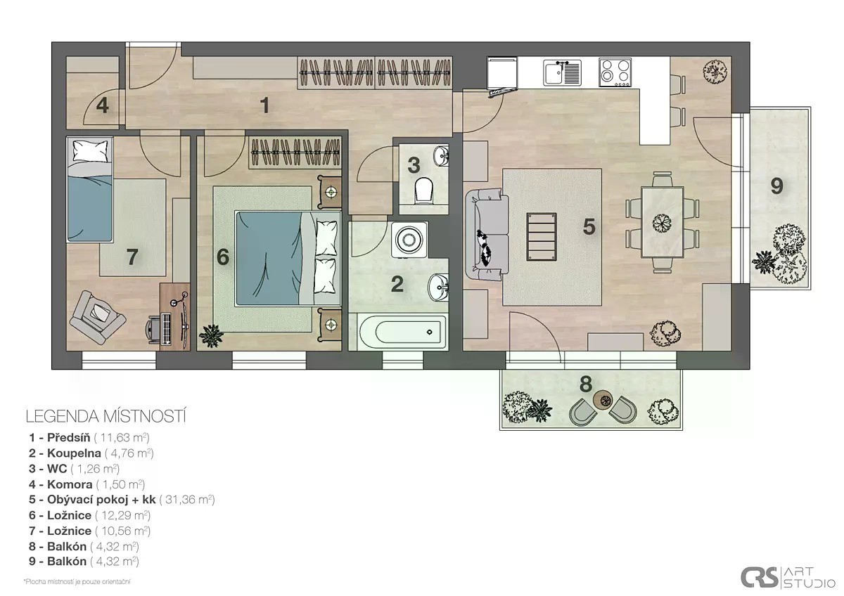 Nabízíme k prodeji moderní byt 3+kk o podlahové ploše 74 m², který se nachází v klidné a vyhledávané lokalitě Prahy - Letňanech. Tento atraktivní byt, umístěný v 3.NP novostavby s výtahem, nabízí kombinaci pohodlí a moderního bydlení s výhodami rychlé dostupnosti městské infrastruktury. Interiér bytu se skládá z prostorného obývacího pokoje s kuchyňským koutem, dvou ložnic, koupelny, samostatného WC a předsíně. Velkou výhodou jsou 2 balkony o celkové velikosti 10 m², které poskytují výhledy na okolní rodinnou zástavbu a do klidné zeleně. K bytu náleží také sklep a garážové stání. Byt se prodává zařízen, což novým majitelům dává možnost komfortu přímého nastěhování. Vybavenost domu zahrnuje bezpečnostní kamerový systém. Umístění bytu v Letňanech poskytuje veškeré výhody městské části s kompletní občanskou vybaveností včetně škol, školek, obchodů, lékařských služeb a kulturních zařízení. Dopravní dostupnost je výborná - v blízkosti se nachází autobusové zastávky, a rychlý přístup na dálnici a městský okruh umožňuje snadnou dostupnost do centra Prahy i do jiných částí města. Tento byt je ideální volbou pro ty, kteří hledají komfortní a moderní bydlení v klidné a dobře dostupné části Prahy. Nabízí ideální prostředí pro rodinu nebo aktivní jednotlivce či páry, kterým poskytne útočiště pro klidné bydlení s možností rychlého přesunu do rušného centra města.
