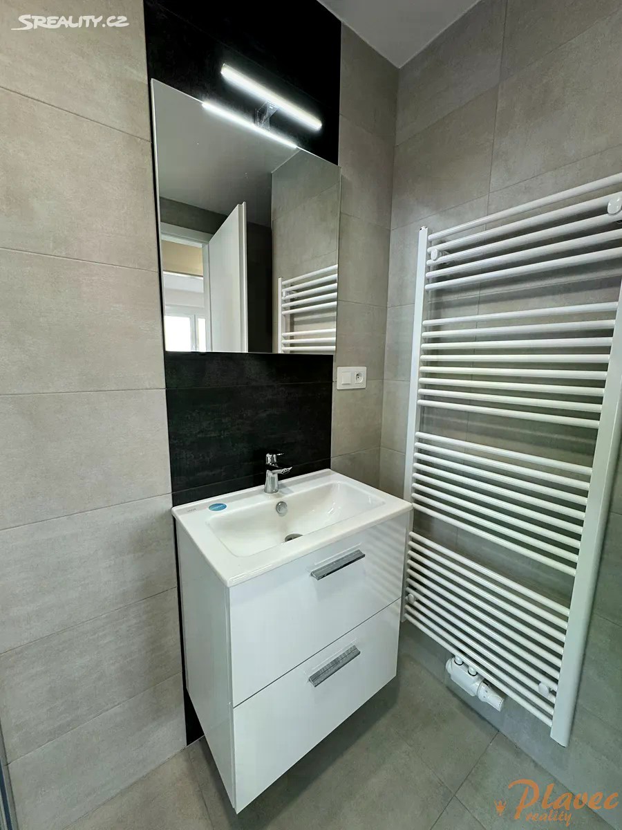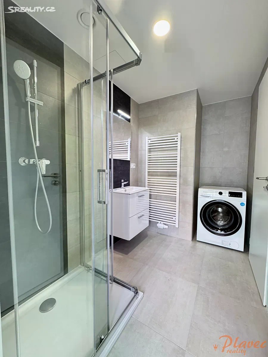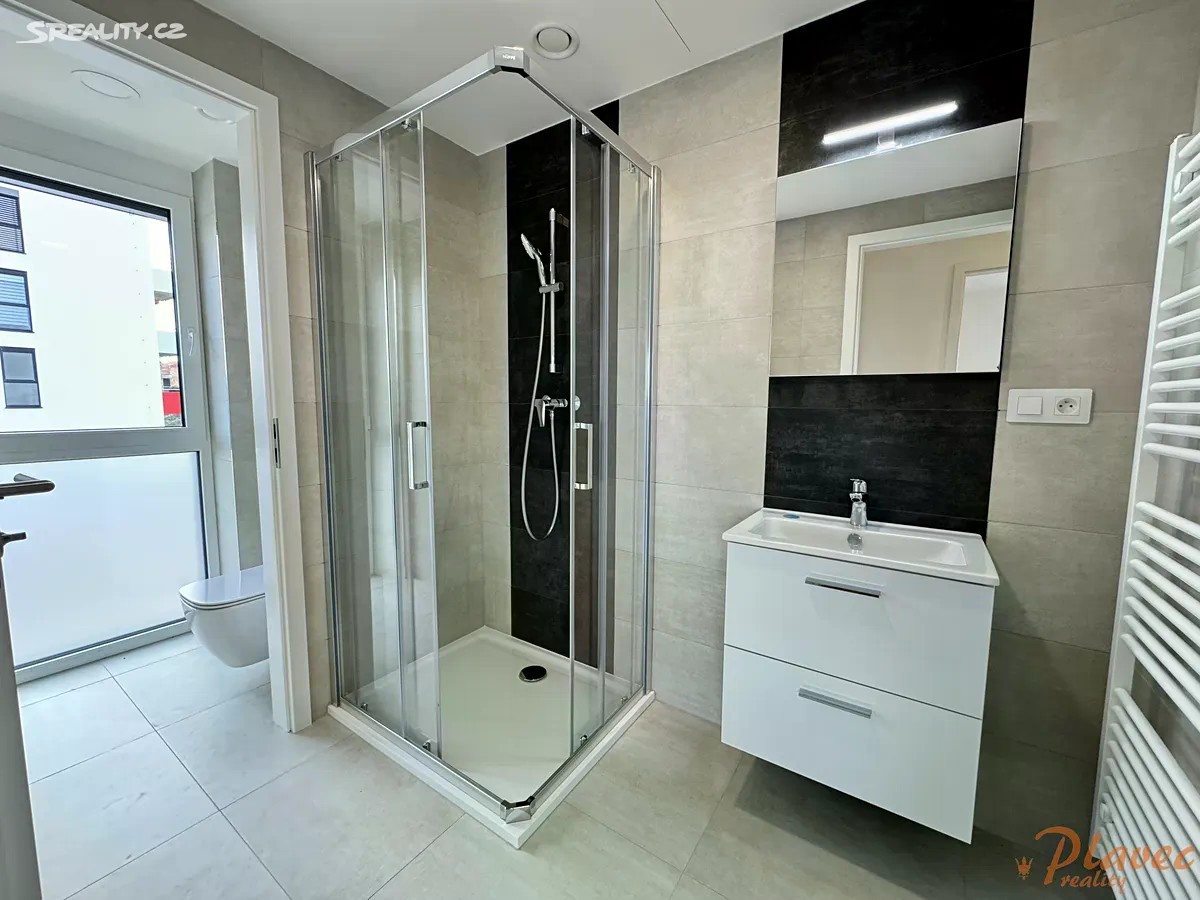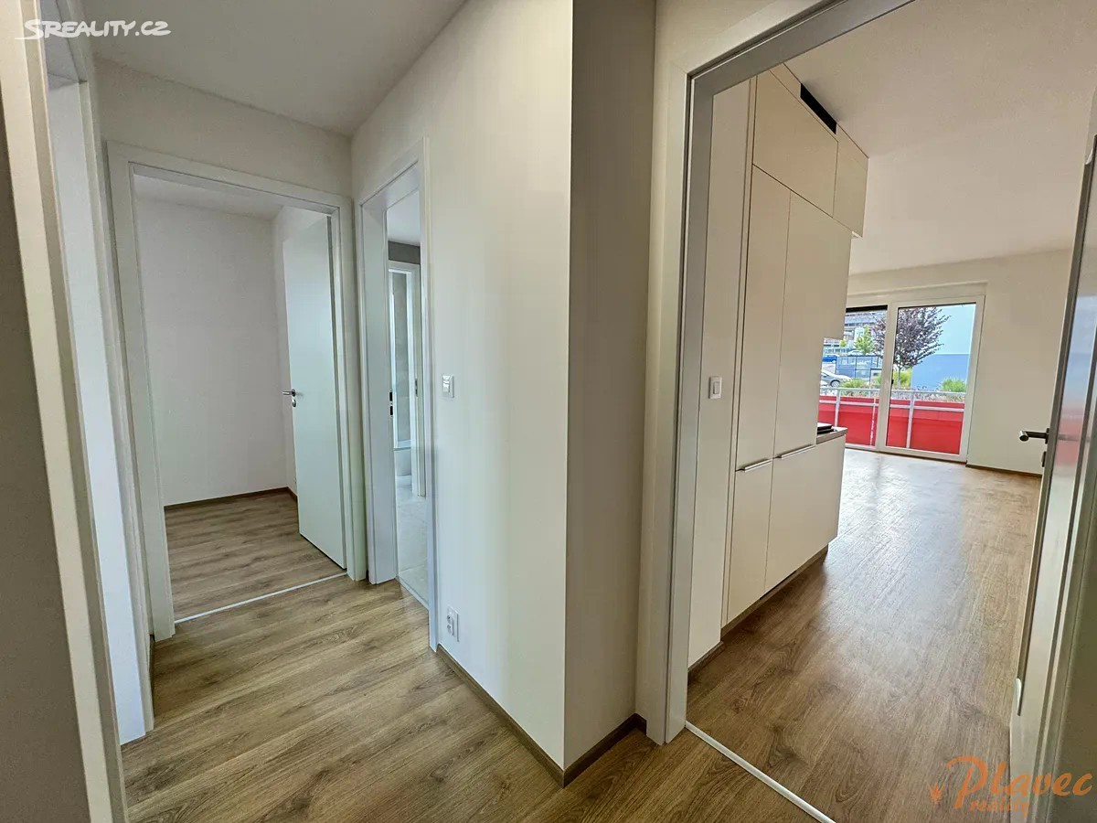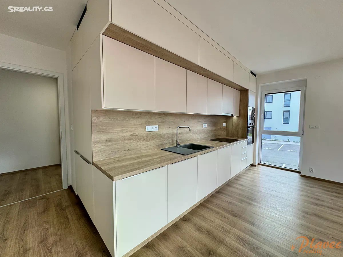 Nabízíme pronájem hezké novostavby bytu o velikosti 3+kk (a rozloze 64 m2) s balkonem (4,5 m2), sklepem (2,2 m2) a parkovacím stáním v klidné části města Hořovice, ulice Kopřivová. Dům je cihlový, se zateplením. Vytápění i ohřev vody jsou centrální. Byt se nachází v 1. patře/ 3 s výtahem. Byt je úplně nový, zatím v něm nikdo nebydlel. Má bezpečnostní dveře, venkovní rolety na dálkové ovládání. Dále je zde kuchyňská linka vybavená elektrickou troubou, indukční deskou, myčkou, lednicí, mrazákem, mikrovlnkou (vše zn. MORA) a v koupelně je také pračka (zn. PHILCO). Orientace obývacího pokoje je na Jiho - Západ. Dispozice: předsíň (6,08 m2), obývací pokoj s kuchyňským koutem (27,87 m2), balkon (4,5 m2), ložnice (12,37 m2), dětský pokoj (11,91 m2), koupelna (4,48 m2), toaleta (1,34 m2). K bytu náleží také sklep v přízemí domu a vlastní parkovací stání u domu. Dům se nachází na okraji obce v nové zástavbě, jejíž součástí je multifunkční hřiště a dětské hřiště. Podél domu vede také alej. Autobusová zastávka je cca 7 minut chůzí, hned vedle ní je nemocnice s lékárnou, dále pak MŠ je 10 minut. Na D5 je to cca 10 minut autem. V okolí je spousta cyklostezek. V městě Hořovice je veškerá občanská vybavenost, mj. také zimní stadion, Lesopark Dražovka, motokáry, letní aquapark. Pronájem je volný ihned.