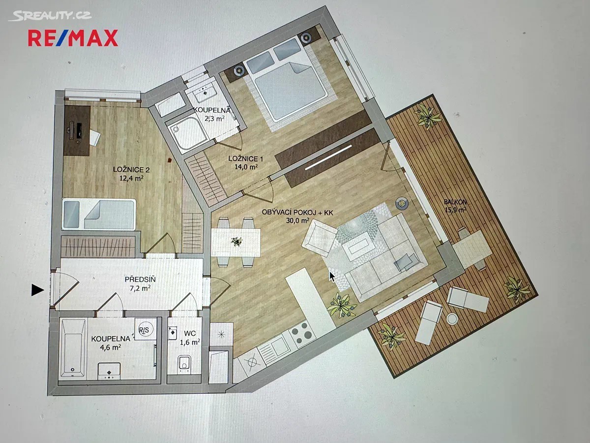 Nabízíme k pronájmu luxusní byt 3+kk o celkové výměře 94,3 m² (78,4 m² byt + 15,9 m² terasa), který se nachází ve 2. nadzemním podlaží rezidence Aalto Cibulky v ulici Naskové. Byt je součástí žádaného rezidenčního projektu v klidné lokalitě plné zeleně s recepcí a vysokým standardem bydlení. Byt je prostorný, světlý a nadčasově řešený. Hlavní obytný prostor s kuchyňským koutem má 30 m² a je vybaven kompletně zařízenou kuchyňskou linkou. Obývací pokoj má velká francouzská okna se vstupem na terasu. Rozlehlá terasa (15,9 m²) je orientovaná na východ, je zde dostatek denního světla a příjemné posezení po celý den. Dvě ložnice nabízejí dostatek soukromí. Jedna z ložnic disponuje ensuite koupelnou se sprchovým koutem, v druhé koupelně je vana, toaleta je samostatná. Vstupní chodba s praktickými úložnými skříněmi, pračka k dispozici. Součástí bytu je také sklepní kóje, která poskytuje další úložný prostor, kočárek či kola možno uschovávat v kočárkárně v suterénu domu. V suterénu domu se nachází garážové stání. Byt je částečně vybaven dle fotografií, po dohodě s majitelem je možné vybavení upravit podle potřeb nájemce. Rezidence Aalto Cibulky nabízí špičkový komfort a bezpečí. V areálu se nachází recepce s 24 hodinovou ostrahou, velkorysé společné prostory, objekt se nachází v soukromém oploceném parku, kam mají vstup výhradně jen rezidenti. Je zde dětské hřiště s trampolinami, příjemná zákoutí k posezení a odpočinku v zeleni, dále fitness centrum (klubové členství), vinotéka, manikúra, AlzaBox i menší potraviny. Přímo u domu se pak nachází přírodní park Cibulka, který je ideální pro aktivní sport i odpočinek. Nabíjecí stanice pro elektromobily před domem. Lokalita je skvěle dostupná jak autem, tak MHD. Zastávka tramvaje a autobusu se nachází jen pár minut chůze od domu a umožňuje rychlé spojení do centra Prahy (cca 15 minut na Anděl). V blízkosti je i vlaková stanice Praha-Cibulka, která zajišťuje další možnosti dopravy. V okolí je bohatá občanská vybavenost, školy, školky, restaurace i zdravotnická zařízení. Volný od 1. 1. 2026, po domluvě možnost od 1.12. 2025. Zálohy zúčtovatelné pro tři osoby 7.500,- Kč, elektřina přepis na nájemce. Pro více informací či prohlídku mne neváhejte kontaktovat emailem.