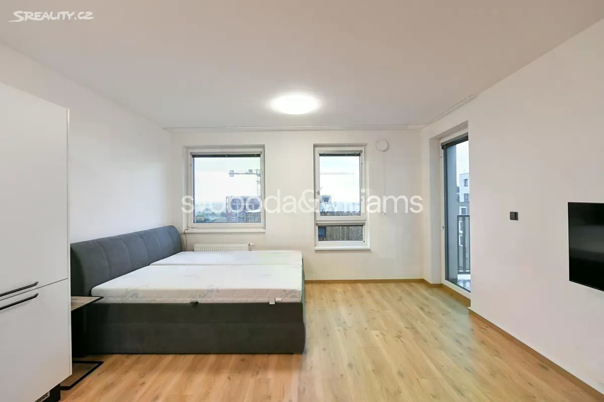 Částečně zařízené studio s terasou v novostavbě nedaleko Obory Hvězda a přírodní rezervace Divoká Šárka. Lokalita s rychlou dostupností k občanské vybavenosti a do centra, s autobusovými spoji k několika stanicím metra na trase A a výborným spojením na letiště a na Pražský okruh. Součástí místní vybavenosti je mimo jiné nákupní centrum Metropole Zličín nebo OC Šestka. Byt nabízí obývací pokoj / ložnici, plně vybavený kuchyňský kout, vstup na západně orientovanou terasu, koupelnu se sprchovým koutem, toaletou a pračkou, komoru a vstupní předsíň. Vinylové podlahy a dlažba, vnitřní žaluzie, vestavěné skříně, myčka, indukční varná deska, bezpečnostní dveře.