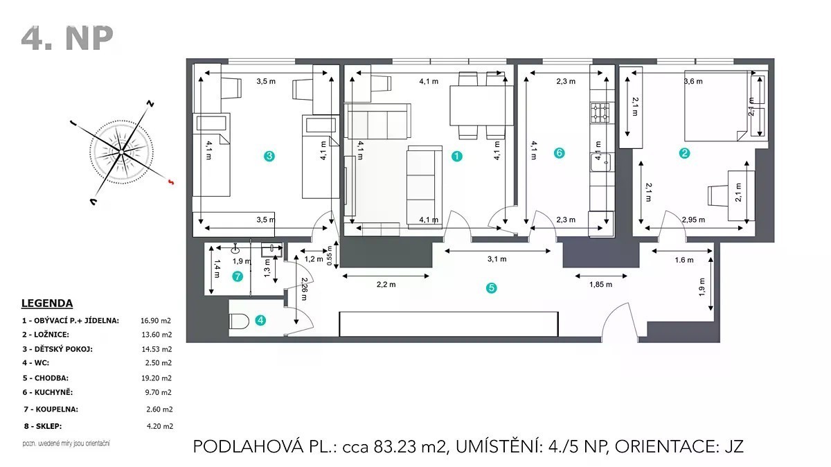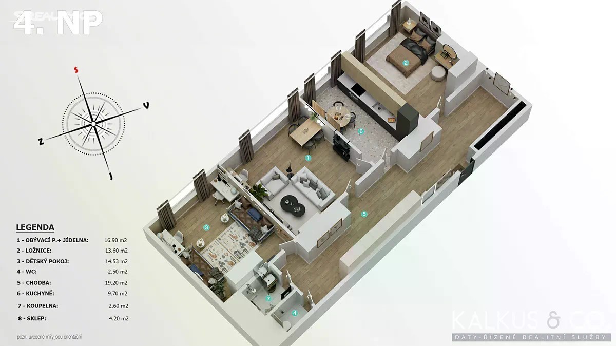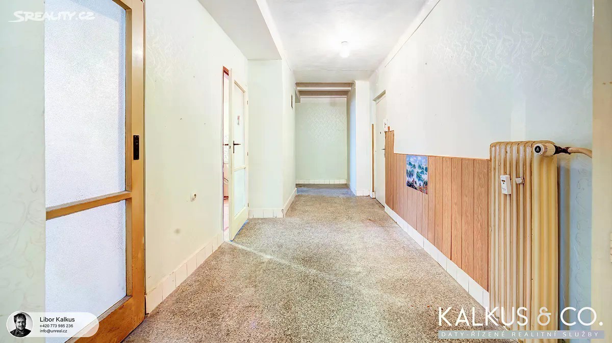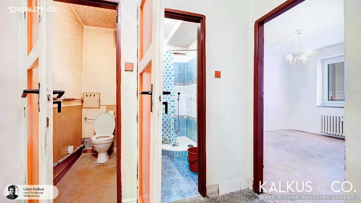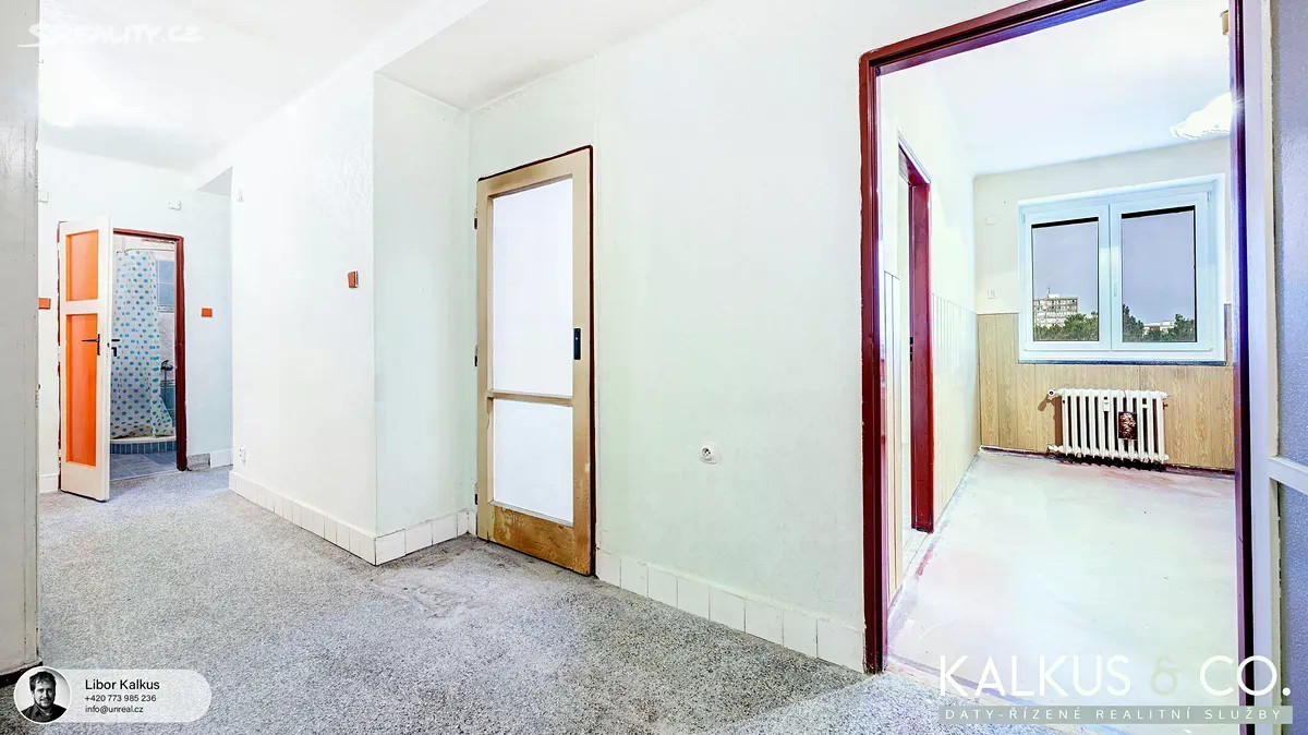 Prodáme prostorný byt 3+1 v Kročehlavech, Kladno Nabízíme k prodeji prostorný byt o dispozici 3+1 v původním, udržovaném stavu, který se nachází ve 4. patře (z celkem 4) domu s výtahem v žádané lokalitě Kladno - Vrchlického. Byt má podlahovou plochu 77,5 m² + sklep 4.2 m² a nabízí příležitost pro rekonstrukci dle vlastních představ. Dispozice bytu : chodba: cca 19,2 m² - dostatek prostoru pro vestavěné skříně; obývací pokoj + jídelna: cca 16,9 m² - nabízí se varianta propojení s kuchyní; ložnice: 13,6 m² - samostatná, neprůchozí; dětský pokoj 14,5 m² - samostatný, neprůchozí; kuchyně 9,7 m²; koupelna 2,6 m²; samostatné WC 2,5 m²; sklep 4,2 m²; Vybavení a stav: podlahy: v pokojích parkety (vhodné k renovaci), v kuchyni beton s linem, v chodbě terazzo, v koupelně a WC dlažba; okna: plastová do ulice; topení: litinové radiátory; elektřina: původní rozvody; Byt je v původním stavu určený k modernizaci dle vlastních představ. Lokalita: Budova se postupně udržuje z našetřených peněz, v říjnu proběhne výměna elektroinstalace ve společných prostorech a původních vchodů za nové. Nemovitost se nachází ve vyhledávané části Kladna s kompletní občanskou vybaveností - obchody, školy, školky, zdravotní péče i MHD v blízkosti. Pozn. Jelikož není zatím známa energetická třída PENB, v souladu s novelou zákona 406/2000 uvádíme nejhorší energetickou třídu, tedy G.
