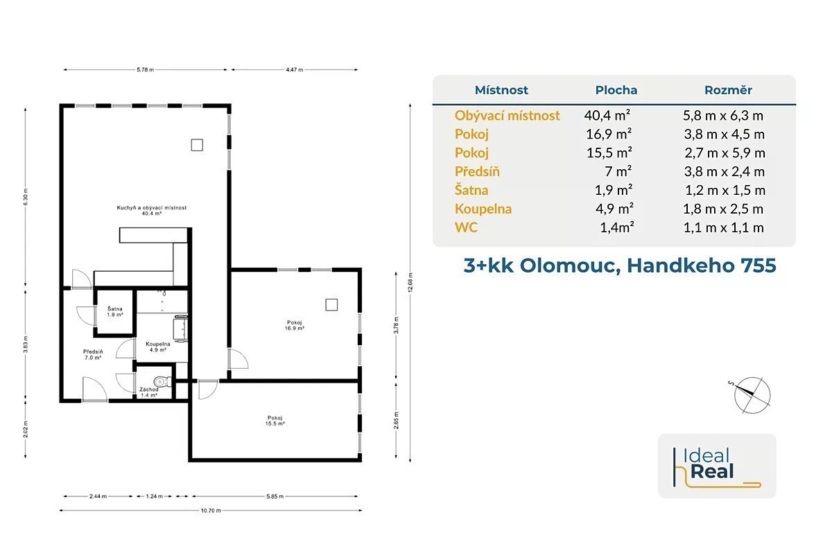 Pronájem bytu 3+kk 87 m² Handkeho, Olomouc - Nové Sady