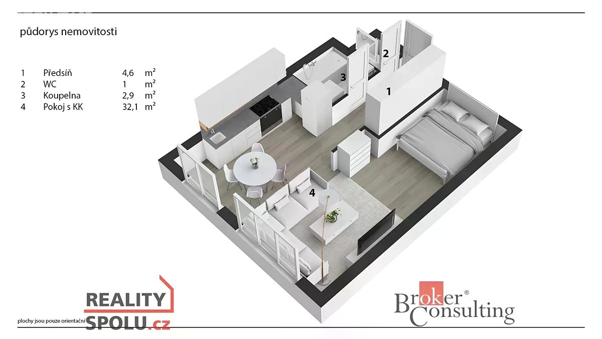 Nabízíme k prodeji světlý a prostorný byt 1+kk v osobním vlastnictví o velikosti 40,6 m² (včetně sklepa), který se nachází v 8. patře panelového domu s výtahem. Dispozice bytu je velmi praktická - obývací pokoj s kuchyňským koutem je doplněn útulným prostorem pro ložnici odděleným za rohem. K bytu dále náleží předsíň, samostatná koupelna a toaleta. Díky umístění v horním patře působí byt vzdušně a nabízí dostatek denního světla. Vybavení bytu: kuchyňská linka se spotřebiči, vestavěná skříň, koupelna s vanou, plastová okna. Součástí prodeje je také sklepní kóje. Možnost nastěhování je dle dohody, předpokládaný termín je únor/ březen. Parkování je možné na rezidentní zóně před domem, vyhrazené parkovací místo k bytu nenáleží. Lokalita nabízí výbornou občanskou vybavenost - v blízkosti se nachází obchodní centrum Letňany, školy, školky, zdravotní středisko, sportoviště, aquacentrum, cyklostezky i rozsáhlé parky a zalesněné plochy vhodné k procházkám a relaxaci. Dopravní dostupnost je velmi pohodlná - nedaleko domu je autobusová zastávka s přímým spojením na stanici metra C Letňany, odkud se dostanete do centra Prahy během několika minut. Pro více informací a sjednání prohlídky nás neváhejte kontaktovat.