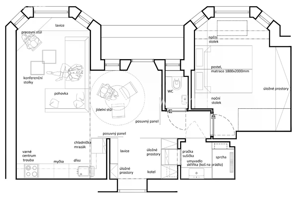 Klimatizovaný byt se dvěma arkýři a lodžií se nachází ve 4. podlaží cihlového bytového domu, který stojí v boční jednosměrné ulici lemované vzrostlým stromořadím, asi 10 minut jízdy MHD od centra metropole. Praktickou dispozici tvoří obývací pokoj s otevřenou kuchyní, jídelnou a pracovním koutem, ložnice, koupelna (se sprchou), samostatná toaleta a předsíň. Z obývací části vede vstup na lodžii. Byt byl kompletně zrekonstruován v r. 2019. Interiérové dveře jsou značky Vekra stejně jako dřevěná okna s trojskly, podlahy jsou vinylové s podlahovým vytápěním. Vybavení bytu zahrnuje úložný vestavěný nábytek na míru a kuchyň od společnosti Hanák. Vytápění je zajištěno elektrokotlem, lze přitápět i klimatizací. K bytu přísluší také odvětrávaný sklep. Nárožní dům je udržovaný, má výtah vedoucí do mezipater, do SVJ plynou příjmy z pronájmu dvou nebytových jednotek. Obyvatelům je k dispozici vnitroblok. Výhodou lokality je kompletní občanská vybavenost i snadný dosah centra. V bezprostřední blízkosti fungují kavárny, restaurace, obchody, mateřské i základní školy, blízko je také artové kino Aero. Dopravní spojení do centra trvá okolo 10 minut, ke stanicím metra je to tramvají cca 5 minut. Oblast zpříjemňuje nedaleký park Parukářka a rozlehlý park na Vítkově. Podlahová plocha 55,8 m², lodžie 3,6 m², sklep cca 3,2 m².