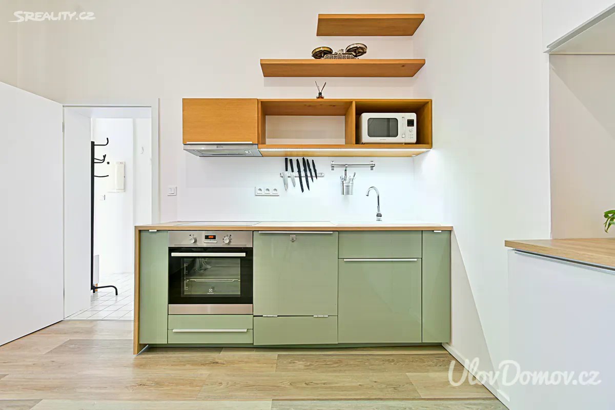 Nabízíme k prodeji designový byt o dispozici 2+kk a výměře 38 m², který prošel kompletní rekonstrukcí v roce 2017. Nachází se ve 4. nadzemním podlaží historické budovy z 19. století (výtah k dispozici), jen 3 minuty chůze od stanice metra a tramvaje Náměstí Republiky - lokalita s výbornou dopravní dostupností. Vstup do bytu vede z historické pavlače s krásným výhledem na vodárenskou věž a řeku Vltavu. Byt se nabízí kompletně vybaven. Součástí prodeje jsou kuchyňské spotřebiče - lednice, myčka, elektrická trouba, sklokeramická deska, digestoř, mikrovlnná trouba. Obývací část disponuje rozkládacím gaučem, jídelním stolem s židlemi, televizí a úložnými prostory. V ložnici se nachází manželská postel, šatní skříň, knihovna, zrcadlo a skříňka. Součástí koupelny je sprchový kout, umyvadlo, skříňka pod umyvadlem, zrcadlo. Toaleta je oddělena, propojena s vestavěnou skříní s pračkou a plynovým kotlem. Vestavěný dřevěný nábytek byl vyroben na míru truhlářem dle návrhu architektky. K bytu náleží sklepní kóje v suterénu domu. Byt je připravený k okamžitému nastěhování či pronájmu.