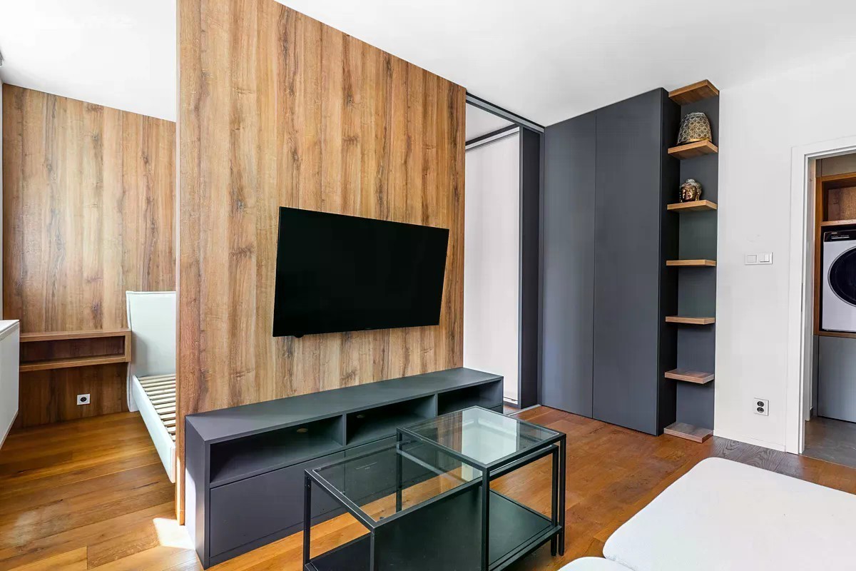 Plně vybavený byt ve vysokém standardu o dispozici 1+1 (2+kk) a ploše 38 m², nacházející se v 5. patře moderní novostavby s výtahem v oblíbené lokalitě Praha - Karlín. Standard a vybavení: dřevěné podlahy prémiová dlažba kvalitní dřevěné dveře s magnetickými klikami kompletně vybavený interiér včetně vestavěných spotřebičů (lednice, myčka, trouba, pračka se sušičkou) Dispozice: vstupní předsíň, kuchyňská linka s moderními spotřebiči, prostorná koupelna se sprchovým koutem a WC, obývací pokoj s chytře oddělenou ložnicí pomocí příčky s posuvnými dveřmi. K bytu náleží sklep (4 m²). Lokalita: Karlín patří mezi nejžádanější rezidenční lokality Prahy - nabízí perfektní dopravní dostupnost (metro B - Křižíkova pár minut chůze, tramvaj na Karlínském náměstí), bohatou nabídku kaváren, restaurací i obchodů. Investiční příležitost: Byt je díky své poloze a standardu ideální jak pro vlastní bydlení, tak pro investici. K dispozici je připravená kalkulace pro Airbnb business se zajímavým výnosem. V případě zájmu mě neváhejte kontaktovat.