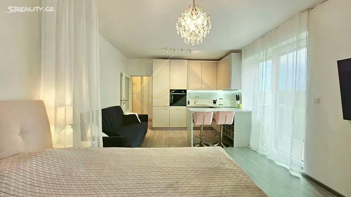 Nabízím k pronájmu luxusní, kompletně a vkusně zařízený byt 1+kk o velikosti 36,2 m² + balkon 5,7 m², který se nachází v 6. patře moderní novostavby s výtahem v klidné ulici Za Černým mostem. Byt je světlý, prostorný a vybavený ve vysokém standardu. Součástí je plně zařízená kuchyňská linka včetně nádobí a spotřebičů značky Bosch (varná deska, trouba, lednice s mrazákem, digestoř, mikrovlnka). V předsíni jsou velké vestavěné skříně, které poskytují dostatek úložného prostoru. Obývací část je vybavená moderním, kvalitním nábytkem v elegantním stylu. Koupelna je komfortní a vybavená vanou, přípravou pro individuální hygienu (bidetová sprška), skříní a pračkou. Oblíbená a klidná část Prahy 9 s výbornou dopravní dostupností: Lokalita je dobře napojená na městskou hromadnou dopravu, v rámci Černého Mostu existují stanice metra linky B (Rajská zahrada, Černý Most) a mnoho autobusových linek obsluhujících okolí Blízkost nákupních center, supermarketů a restaurací Klidná a bezpečná část města Pěkná zelená okolí Kompletní občanská vybavenost - pošta, lékaři, školy, sportovní a volnočasové aktivity Nájemné činní 20.000,- Kč + záloha na služby a energie. V ceně není zahrnuta vratná kauce majiteli a odměna za zprostředkování realitní kanceláři. Ideální pro 1-2 osoby, nekuřáky, bez domácích mazlíčků.