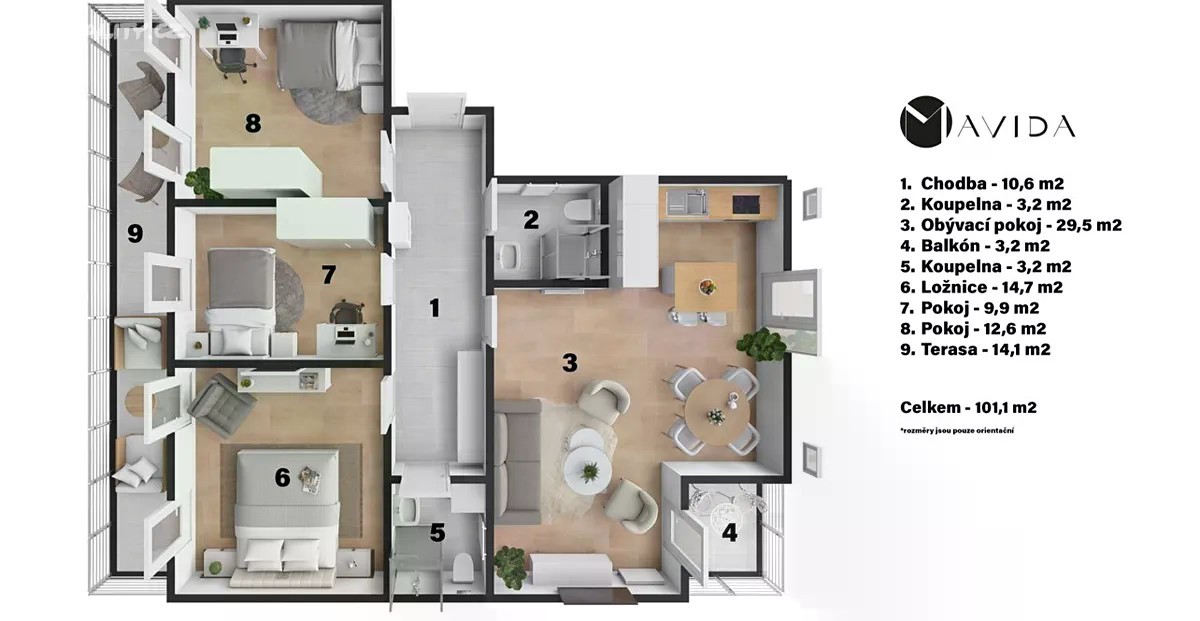 Nabízíme ke koupi světlý a moderně řešený byt 4+kk, který se nachází v oblíbené rezidenční čtvrti Praha 5 - Košíře. Tato lokalita je vyhledávaná pro svou kombinaci klidného bydlení uprostřed zeleně a zároveň skvělé dostupnosti do centra města. V domě ke výtah značky Otis. Parkovací stání se nachází v garáži domu. Byt nabízí pohodlné a praktické dispoziční řešení pro rodinu i náročnější klienty, kteří ocení dostatek prostoru, moderní standard a příjemnou atmosféru. Lokalita Praha - Košíře Košíře jsou tradičně vyhledávanou částí Prahy 5, která spojuje kouzlo starší vilové zástavby se současným rezidenčním rozvojem. Oblast je obklopena parky a lesoparky, jako je Cibulka nebo Vidoule, které přímo vybízejí k procházkám, sportu či relaxaci. V blízkosti se nachází veškerá občanská vybavenost - školy, školky, obchody, kavárny i restaurace. Dopravní spojení je výborné: zastávky MHD jsou v docházkové vzdálenosti, na metro B - Anděl se dostanete během několika minut a centrum města je snadno dostupné i autem. Tato lokalita je ideální pro ty, kteří hledají klidné a kvalitní bydlení s výhodami městské infrastruktury. Byt disponuje balkonem (3,2 m²) s jedinečným výhledem na Strahov a terasou (14,1 m²), 2 koupelny, sklepem (7 m²) a parkovacím stáním. Dispozice zahrnuje prostorný obývací pokoj s kuchyňským koutem, tři samostatné pokoje a dostatek úložného prostoru. Cena bytu : 16 800 000,- Kč Cena parkovacího stání 800 000, -Kč celkem 17 600 000, -Kč sklep je zdarma. Rezidenční projekt má k dispozici zahradu pro všechny bytové jednotky. V domě je výtah Otis. K bytu náleží sklep 7 m2. K bytové jednotce je nutnost přikoupit parkovací stání v garáži za 800 000,-Kč V inzerátu jsou použité vizuální fotografie ( vybavené ložnice a obyvacího pokoje ) byt se prodává bez kuchňské linky. Pro více informací kontakutjte makléře.