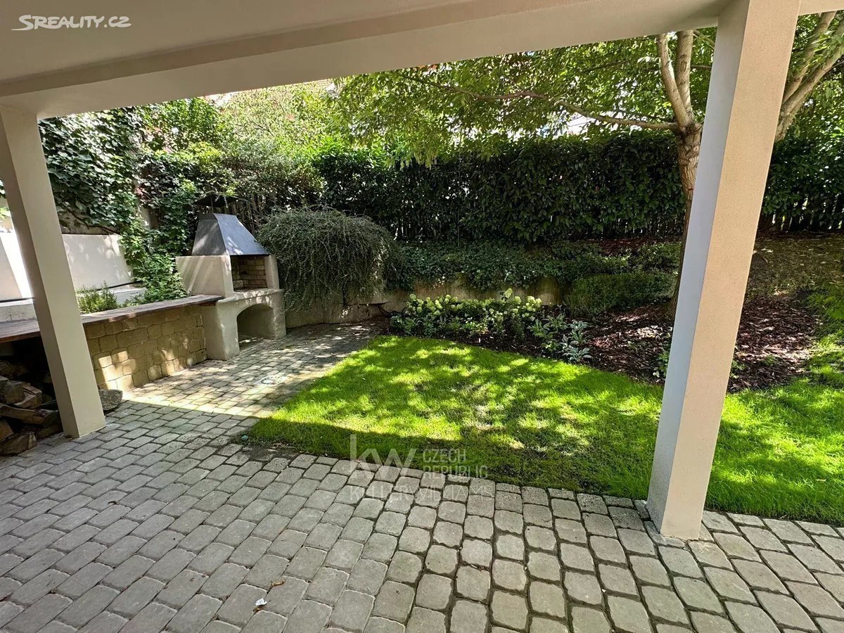 Mimořádné místo k bydlení na Hanspaulce - Praha 6. Nabízíme k pronájmu krásný rodinný 3-podlažní dům se zahradou a garáží pro 3 auta po kompletní právě dokončené rekonstrukci. Dům má podlahovou plochu 381 m2, zahrada - 250m2. Tento nádherný dům ma samostatnou plně vybavenou kuchyň, 5 ložnic, přičemž jedna z ložnic je oddělitelná na samostatný apartmán, 4 koupelny, 3 samostatná WC, mnoho teras a balkonu s výhledy do malebného okolí této vyjímečné lokality. K dispozici pro relaxaci je zde sauna, dále funkční krb, venkovní gril, vinotéka. Horní patro - galerie má zajímavý prostor, dá se teoreticky použít na další ložnici, jen tam není koupelna. Všude jsou instalována nová okna, dřevěné parkety, kamerový sytém. Další parking pro hosty je na příjezdové cestě. Těším se na setkání na prohlídce, neváhejte mne kontaktovat.