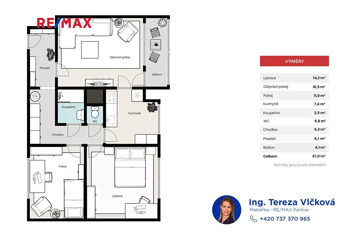 Hledáte prostorný byt pro rodinu v Praze s dobrou dostupností i příjemným zázemím? V ulici Lamačova v pražských Hlubočepích nabízím ke koupi byt 3+1 o výměře 71,5 m² se zasklenou lodžií o velikosti 5 m². Nachází se v 7. nadzemním podlaží z 8 v dobře udržovaném domě. Byt je velmi prosvětlený a jeho nádherný výhled si hned zamilujete. Dispozice bytu zahrnuje tři samostatné pokoje, kuchyň, koupelnu s vanou, samostatné WC a prostornou chodbu. Bytové jádro je zděné, okna plastová se žaluziemi. Vytápění je centrální, ohřev vody zajišťuje vlastní bojler. Plyn do bytu není zaveden. K bytu náleží sklepní kóje a v domě jsou k dispozici také tři kolárny. Uvedené výměry jsou orientační. Dům je panelový, velmi dobře udržovaný a v posledních letech prošel řadou oprav. Pravidelně se do něj investuje v rámci běžné údržby. Veškeré opravy jsou hrazeny z fondu oprav, který je stabilní - bez potřeby úvěru a bez plánovaného navyšování. Renovací prošla mj. střecha včetně zateplení, hlavní elektrické vedení až k bytům a proběhla výměna výtahu i vstupních dveří na čip. Parkování je možné přímo před domem ve fialové zóně (oblast P5.6) pro rezidenty za 600 Kč/rok. V domě je dostupné optické připojení k internetu. V okolí je kompletní občanská vybavenost - základní a mateřská škola, obchody i zdravotní středisko. Dopravní dostupnost zajišťují autobusové a tramvajové linky s přímým spojením na Smíchovské nádraží (metro B). Lokalita zároveň nabízí rychlý přístup do Prokopského a Dalejského údolí, ideálních pro procházky a odpočinek v přírodě. Ve fotogalerii naleznete návrhy možného vybavení bytu. Čekáme na dodání platného PENB ze strany SVJ, prozatím uvádíme kategorii G. Neváhejte a zavolejte si o prohlídku bytu. Těším se na vás. Ing. Tereza Vlčková | realitní makléřka