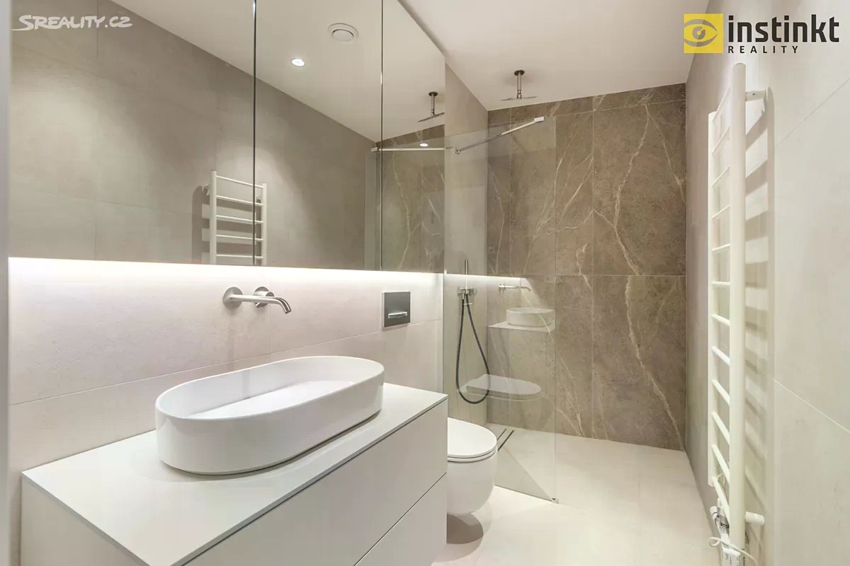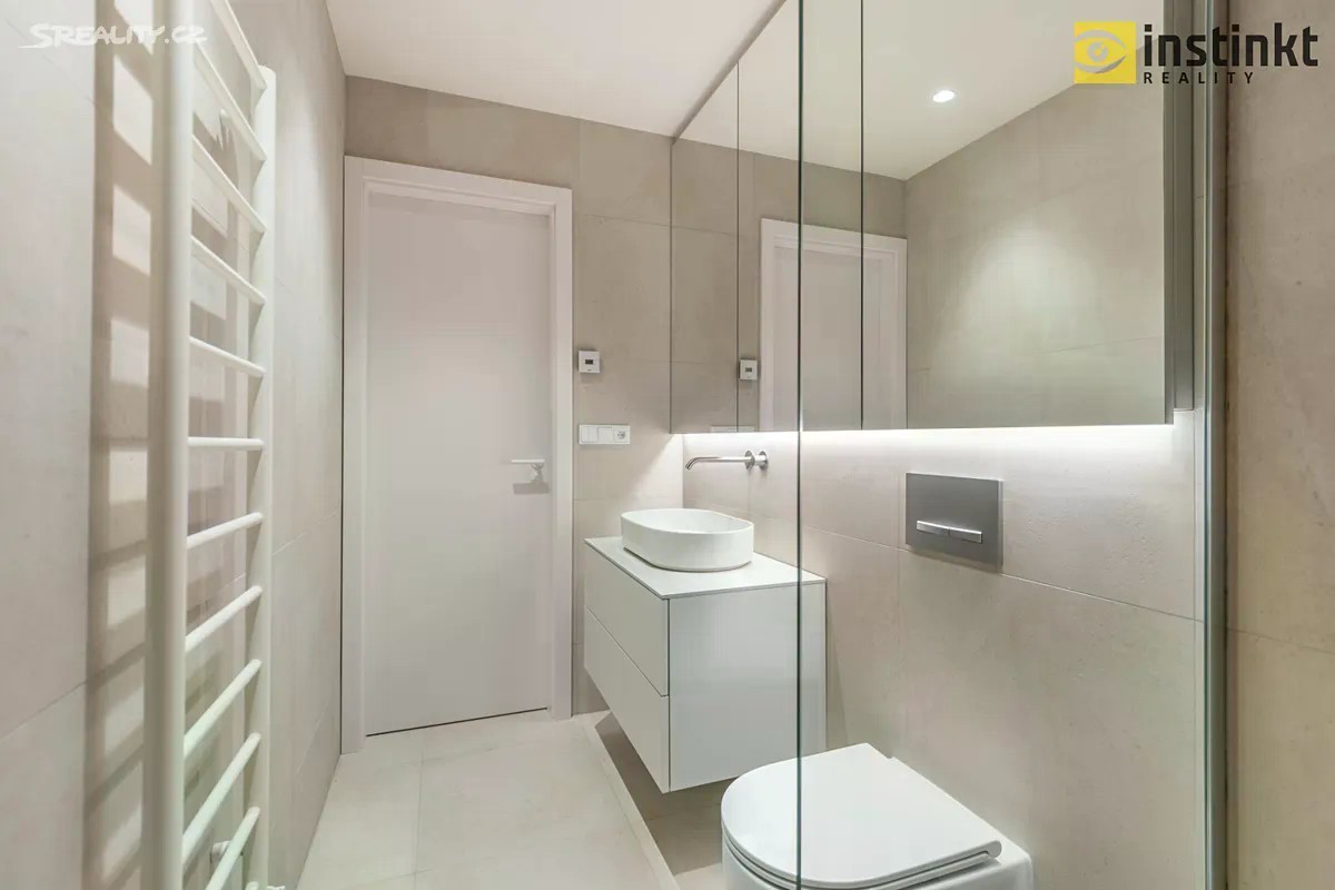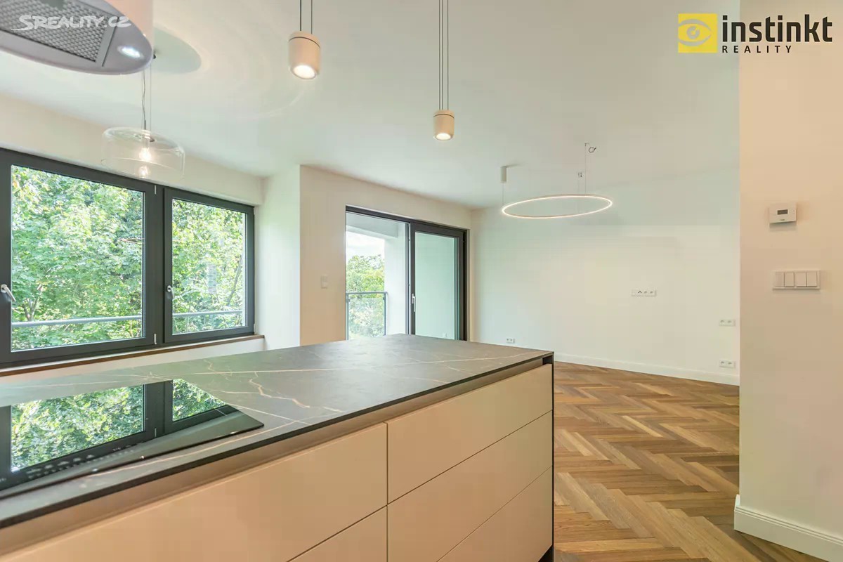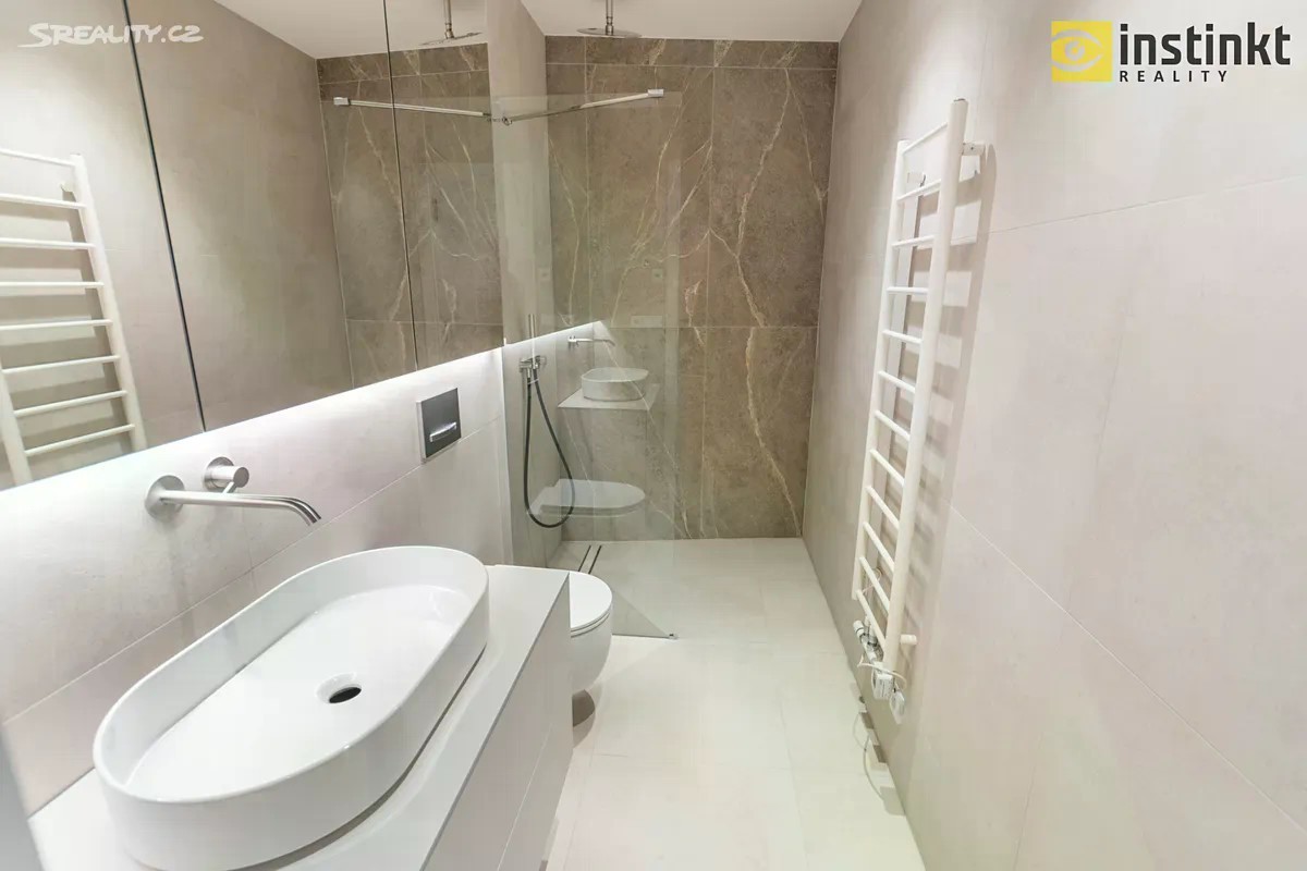 Nabízíme Vám k dlouhodobému pronájmu nízkonákladový, krásný, slunný byt 3+kk s lodžií, sklepem a parkovacím stáním, 3 minuty chůze od stanice metra C - Kobylisy. Byt se skládá ze vstupní chodby, komory, technické místnosti, koupelny s vanou a bidetovou sprškou, druhá koupelna disponuje sprchovým koutem a toaletou. Dále se byt skládá ze dvou pokojů - orientace na západ. Na prostorný obývací pokoj navazuje kuchyňská část, která je vybavena kuchyňskou linkou s vestavěnými spotřebiči (indukční varná deska, elektrická trouba, mikrovlnka, digestoř, chladnička a vinotéka). Z obývacího pokoje se posuvným francouzským oknem vstupuje na lodžii o výměře 4,65 m2, která je orientována na východ do klidného vnitrobloku osazeného zelení. V pokojích a na chodbě je dřevěná podlaha, na sociálním zařízení je keramická dlažba. Nízké provozní náklady díky tepelnému čerpadlu a rekuperaci - pasivní větrání i bez nutnosti otevření oken. V celém bytě je podlahové topení a LED osvětlení. Součástí nájmu je zděný sklep, umístěný v suterénu domu. Za příplatek 2.500,- Kč měsíčně je k dispozici také parkovací stání v podzemních garážích domu. V okolí domu je veškerá občanská vybavenost a také dosti zeleně. Kousek od domu se nachází například obchody s potravinami, lékárna, ZŠ, MŠ, restaurace, tenisové kurty, koupaliště atd. Lesopark Okrouhlík a park Dlážděnka 1 minutu chůze od domu. Krásné, nové, moderní bydlení přímo u metra C - Kobylisy. Vhodné například pro rodinu. Volné od 01.02.2026, po domluvě i dříve. Doporučuji osobní prohlídku.