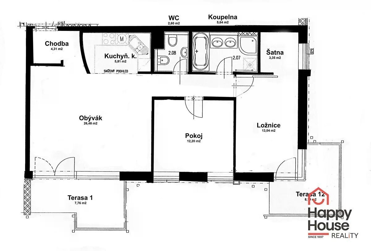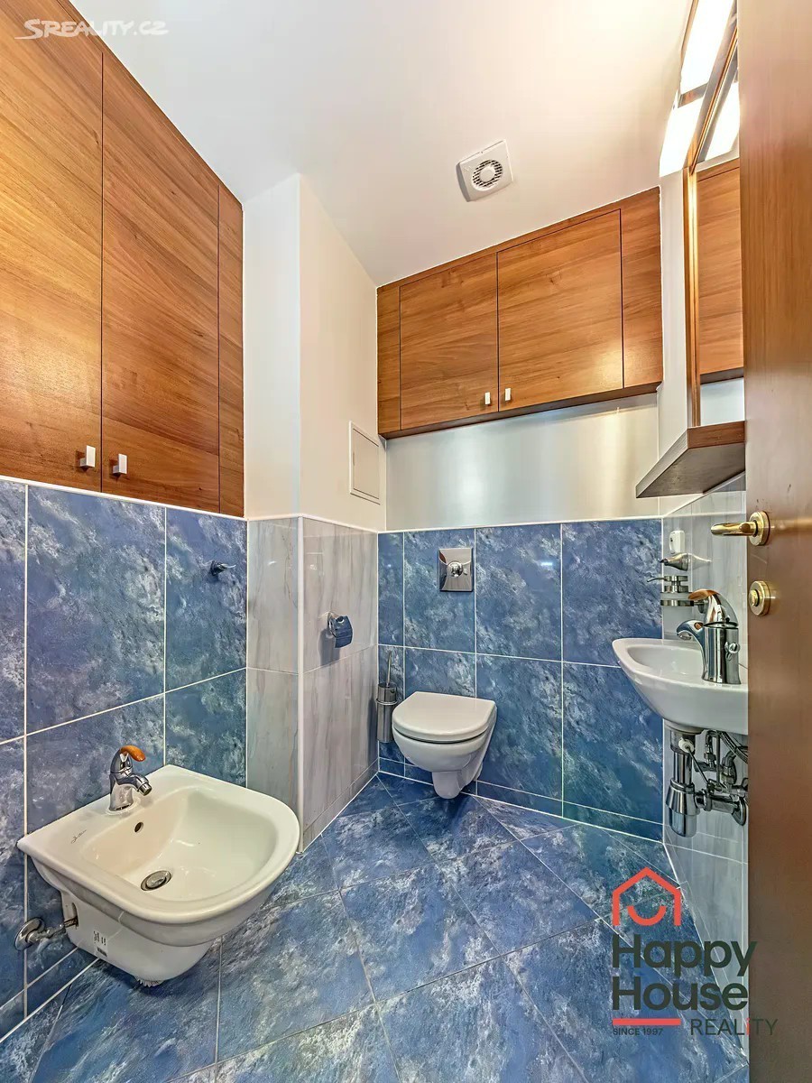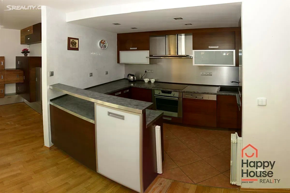 Nabízíme k pronájmu velmi příjemný a světlý byt 3+kk se zahradou a dvěma terasami, který se nachází v přízemí cihlového domu v atraktivní lokalitě Praha 9 - Libeň. Byt o celkové ploše cca 77 m² je částečně zařízený a nabízí praktické dispoziční řešení. Ze vstupní haly (4,31 m²) se vstupuje do prostorného obývacího pokoje (26,42 m²) s kuchyňským koutem (5,81 m²) a přímým vstupem na terasu (7,76 m²). Dále je k dispozici ložnice (13,04 m²) se šatnou (3,35 m²) a vstupem na druhou terasu (8,19 m²), druhá ložnice (12,2 m²), koupelna (2,07 m²) s vanou, sprchovým koutem a pračkou a samostatná toaleta (2,08 m²) s bidetem. Kuchyň je vybavena kuchyňskou linkou se spotřebiči - lednicí s mrazničkou, sklokeramickou deskou, elektrickou troubou, digestoří a myčkou nádobí. V bytě jsou dřevěné podlahy a dlažba, vytápění je dálkové ústřední. K dispozici je také sklep a garážové stání umístěné v podzemí domu. Všechny pokoje jsou neprůchozí a orientovány do zelené zahrady, což zajišťuje klid a soukromí. Dům se nachází v tiché lokalitě obklopené zelení, v bezprostřední blízkosti parku Podviní. Okolí nabízí široké možnosti pro sport i relaxaci - bobová dráha Prosek, lanové centrum Rubeška, cyklostezky i dětská hřiště. V místě je kompletní občanská vybavenost - obchody, školy, školky, restaurace i sportoviště. Výborná dopravní dostupnost: tramvajová zastávka Poliklinika Vysočany - 7 minut chůze, stanice metra B - Českomoravská - 8 minut chůze, v docházkové vzdálenosti také vlakové nádraží Praha - Libeň. Byt je ideální pro pár nebo rodinu, která hledá klidné a komfortní bydlení v zeleni s rychlým spojením do centra města. Poplatky se hradí zvlášť, kauce 2,5x měsíční nájemné. Provize RK jeden měsíční nájem + DPH. Průkaz PENB není k dispozici, proto je uvedena třída G.