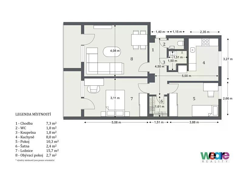 Nabízíme k pronájmu nově zrekonstruovaný byt 3+1 o rozloze 69 m2 umístěný ve zvýšeném přízemí (pokoje orientované do zahrady jsou pocitově jako 1. patro) cihlového domu v jedné z nejžádanějších a nejklidnějších rezidenčních lokalit Prahy 6 - Hanspaulce (ul. Vilímovská). Byt byl navržen ve spolupráci s architekty, kteří vytvořili moderní a funkční dispozici odpovídající požadavkům současného bydlení. Interiér je laděn do útulných odstínů bílé a béžové, s důrazem na kvalitní materiály a precizní zpracování - ať už v nové koupelně, kuchyni, nebo u interiérových dveří. Dispozice bytu: Obývací pokoj - 20 m2 (s lodžií) Ložnice - 15 m2 (s lodžií) Pokoj - 10 m2 Samostatná kuchyně Koupelna Samostatné WC Komora - šatna Oba větší pokoje disponují vlastní lodžií (celková plocha 7 m2), která poskytuje příjemný prostor k odpočinku. Další výhody: Krásný výhled do zeleně Uzamykatelná sklepní kóje (cca 1,5 × 1,5 m) K bytu je možnost pronájmu vyhřívané garáže (18 m2) přímo pod bytem za 3 500 Kč/měsíc. Klidný a bezpečný dům po rekonstrukci Vynikající dopravní dostupnost - metro Bořislavka a Dejvická v dosahu, blízkost přírody i služeb Energeticky velmi úsporný byt Rekonstrukce zahrnovala: Kompletní nové koupelnové jádro Renovované parketové podlahy Novou kuchyňskou linku se spotřebiči Nové interiérové dveře Novou elektroinstalaci Byt je ideální pro pár nebo rodinu, kteří hledají komfortní bydlení v prestižní a klidné části Prahy 6. Měsíční poplatky včetně energií: 4 000 Kč. Navíc je platba za internet a případný pronájem garáže. Byt je k dispozici ihned. Preferujeme dlouhodobý pronájem. Součástí nabídky je také virtuální prohlídka, doporučujeme si jí před prohlídkou projít. Pokud vás byt zaujal, rádi vám jej představíme i osobně.