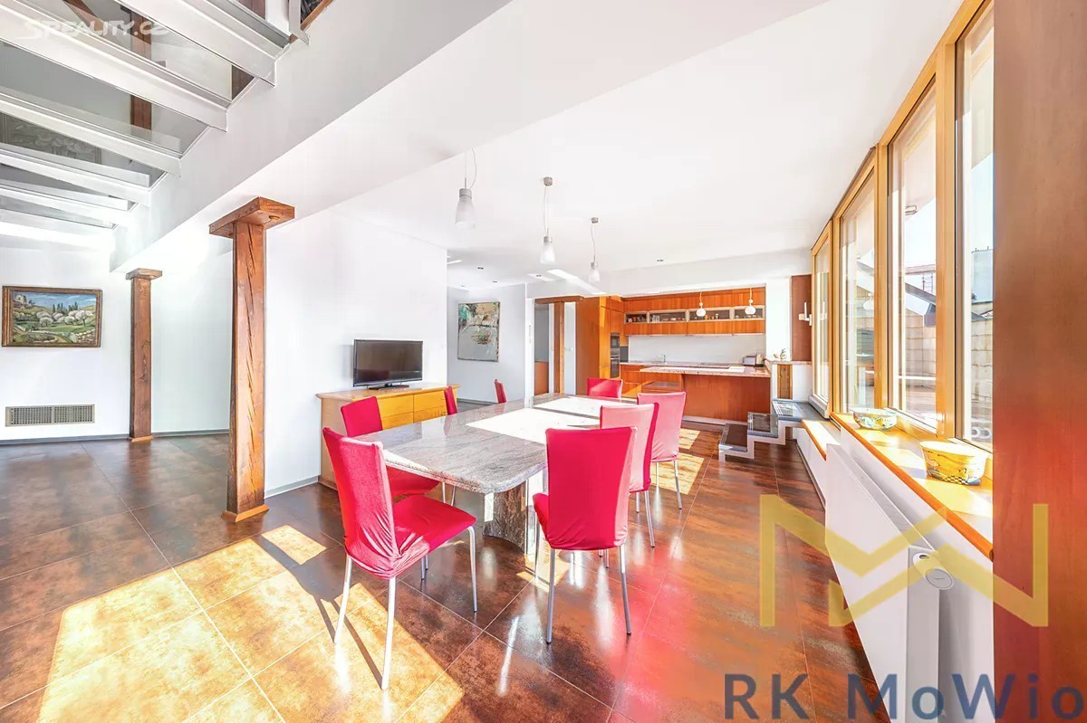 Nabízíme reprezentativní kancelářský prostor rozložený ve dvou podlažích s terasou o celkové výměře 315 m², umístěný v secesní budově s výtahem v 5. patře (6. nadzemní podlaží) na prestižní adrese - Valentinská ulice, Praha 1 - Staré Město. Objekt disponuje přímým vstupem do stanice metra Staroměstská (trasa A) z boční části domu a možností parkování v garážích Rudolfina, které se nacházejí přibližně 150 m od budovy. Dispozice prostor zahrnuje ve spodním podlaží čtyři samostatné, prostorné jednací místnosti vhodné pro klientská jednání či týmové porady. Součástí tohoto patra je dále kuchyňský kout určený pro přípravu občerstvení a tři samostatné skladové místnosti, poskytující dostatek úložné kapacity pro dokumentaci či kancelářské vybavení. V horním podlaží se nacházejí dvě další jednací místnosti, ideální pro menší schůzky nebo individuální práci, dále dvě koupelny a praktické úložné prostory, které zajišťují efektivní využití celé kanceláře. Ulice Valentinská představuje jednu z nejprestižnějších adres pro sídla firem v Praze díky své reprezentativní atmosféře, historickému rázu a výborné dopravní dostupnosti. V docházkové vzdálenosti se nachází stanice metra Staroměstská (linka A) i tramvajové zastávky, zajišťující rychlé spojení do všech částí města. Lokalita rovněž umožňuje snadný přístup k městské magistrále a Mánesovu mostu, což je výhodou při dojíždění automobilem. Bezprostřední okolí nabízí širokou škálu služeb - renomované restaurace, kavárny a obchodní centra, jako například Myšák Gallery, Palladium, Slovanský dům, stejně jako butiky v Pařížské ulici, supermarket Albert a drogerii DM. V okolí se nachází také banky, pošta a další instituce občanské vybavenosti. Pouhých několik minut chůze dělí objekt od Karlova mostu, Rudolfina, Filozofické fakulty UK a dalších významných historických a kulturních památek, které podtrhují prestiž a výjimečnost této adresy.