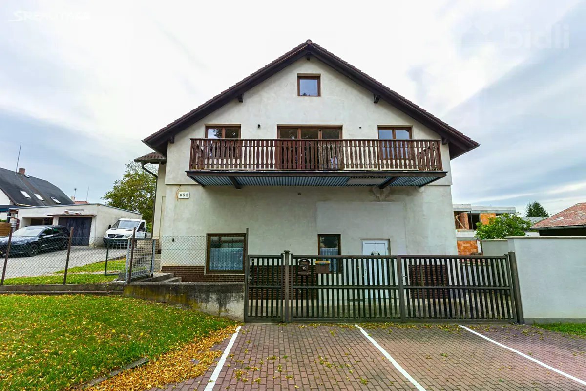 Dům byl kolaudován v roce 1999 a jeho celková zastavěná plocha činí 145 m2. V 1NP (přízemí) je vstupní chodba, kuchyň s jídelnou, obývací pokoj, dvě ložnice, koupelna se sprchovým koutem a šatna. Ve 2. NP (první patro) se nachází kuchyňský kout spojený s obývací pokojem a terasou, dvě ložnice, pracovna, koupelna s vanou a toaletou a druhá samostatná toaleta. Ve 3. NP (druhé patro) jsou dvě samostatné ložnice. Celkový součet užitných ploch místností činí 301 m2. Dům je postaven z cihel a není zateplen. Jako střešní krytina je použita betonová taška Bramac. Vytápění je řešeno plynovým kotlem, ohřev vody plynovým bojlerem. Na dvoře a pozemku o rozloze 340 m2 se nachází garáž pro dvě auta o rozloze 37 m2. Vedle domu je dlážděné nádvoří a kolem domu pruhy zeleně. Nemovitost je napojena na veřejnou kanalizační síť a vodovodní řad, taktéž jsou zavedeny přípojky elektřiny a plynu. Měsíční zálohové platby na energie činí v současné době 8 tis. plyn, 2 tis. elektřina. V blízkosti najdeme základní i mateřskou školu, v docházkové vzdálenosti pak základní služby občanské vybavenosti. Dům se nachází v atraktivní lokalitě s výbornou dostupností pomocí MHD do Prahy i do Brandýsa nad Labem. Je vhodný pro vícegenerační bydlení početné rodiny, nebo i provozování drobného podnikání. Průkaz energetické náročnosti budovy není v tuto chvíli k dispozici, proto je nemovitost zařazena v kategorii G. Pro bližší informace a prohlídku, mě neváhejte kontaktovat.
