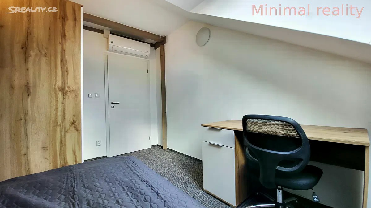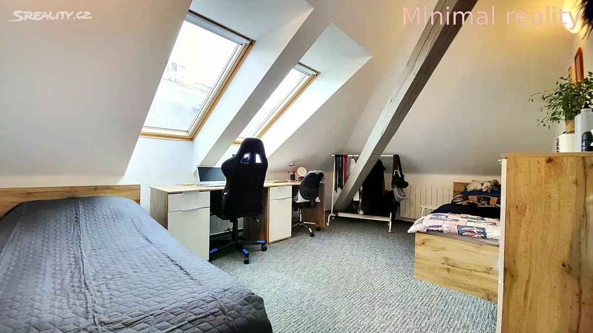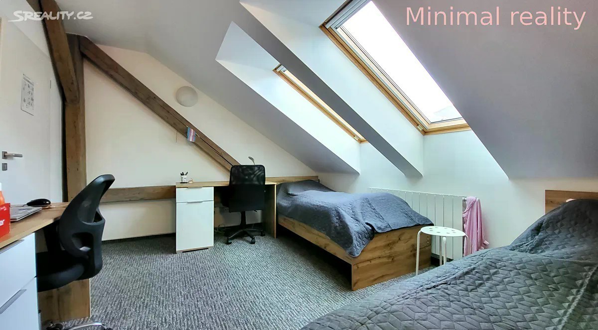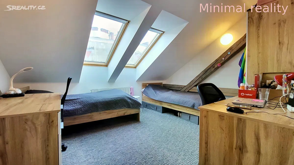 Ve výhradním zastoupení majitele nabízíme k prodeji zařízený mezonetový byt o dispozici 4+1 o podlahové ploše 119 m2. Byt se nachází v 5. nadzemním podlaží zrekonstruovaného historického domu na ulici Jaselská v samém centru města Brna. Byt je dispozičně dobře řešený. Z prostorné chodby je vstup do kuchyně, třech pokojů, koupelny a samostatné toalety. Po dřevěném schodišti vystoupáme do čtvrtého pokoje. Kuchyně je vybavena kuchyňskou linkou s vestavnými spotřebiči (elektrickou troubou, elektrickou varnou deskou, digestoří s odsáváním ven, myčkou) a volně stojící lednicí s mrazákem a mikrovlnnou troubou. V kuchyni je déle jídelní stůl a židle. Vedle kuchyně se nachází tři pokoje. První pokoj je vybaven dvěma postelemi, šatní skříní a dvěma pracovními stoly. Druhý pokoj je vybaven dvěma postelemi, komodou a dvěma pracovními stoly. Třetí pokoj postelí, šatní skříní a pracovním stolem. Koupelna je vybavena sprchovým koutem se skleněnými posuvnými dveřmi, dvěma umyvadly a zrcadly, pračkou značky BOSH a ventilátorem. Toaleta je samostatná. Z chodby s botníkem, věšákem, šatní skříní a zrcadlem je vstup po dřevěném schodišti z masivu do čtvrtého podkrovního pokoje. Pokoj je od schodiště oddělen posuvnými dveřmi a je vybaven manželskou postelí a dvěma pracovními stoly. Na všech střešních oknech Velux jsou instalované vnitřní rolety a venkovní stínící rolety. Klimatizace ve všech místnostech. Vytápění a ohřev vody je zajištěn vlastním plynovým kotlem. Je vyřízeno stavební povolení na instalaci výtahu ve vnitrobloku domu. K bytu náleží sklep o velikosti 8,3 m2. Jaselská je vyhledávaná lokalita s veškerou občanskou vybaveností v pěší dostupnosti. Byt je možné financovat hypotečním úvěrem, který Vám v případě zájmu pomůže vyřídit náš hypoteční poradce. Neváhejte nás kontaktovat pro více informací nebo domluvení osobní prohlídky tohoto výjimečného místa.