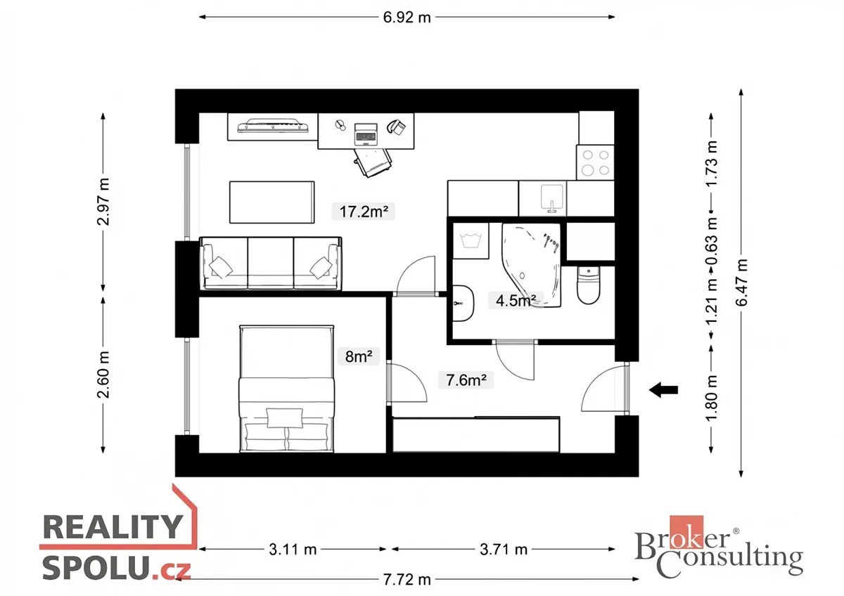 Nabízíme k prodeji byt 2+kk o velikosti 40 m² (podlahové plochy), který se nachází ve 2. nadzemním podlaží panelového domu v klidné části Prahy 10 - Strašnice, v ulici Nedvězská. Dispozice a vybavení: Byt se skládá z obývacího pokoje s kuchyňským koutem, ložnice, koupelny s vanou a toaletou a vstupní chodby. Součástí chodby je prostorná vestavěná skříň, která poskytuje dostatek úložného prostoru. K bytu navíc náleží i samostatná komora hned vedle vstupu do bytu - ideální jako sklepní kóje. Byt bude při prodeji ponechán částečně vybaven, konkrétní rozsah vybavení lze domluvit při osobní prohlídce. Lokalita: Dům se nachází v klidné rezidenční zástavbě s výbornou dopravní dostupností: stanice metra A - Skalka je v docházkové vzdálenosti (do centra cca 10 minut), vlakové nádraží Praha - Zahradní Město nedaleko. V okolí je veškerá občanská vybavenost - školy, školky, obchody, restaurace, zdravotnická zařízení i sportovní centra. Lokalita je ideální pro klidné bydlení s rychlým spojením do centra. Cena: 6 300 000 Kč (včetně provize realitní kanceláře) Byt je vhodný jak k vlastnímu bydlení, tak jako investice k pronájmu.