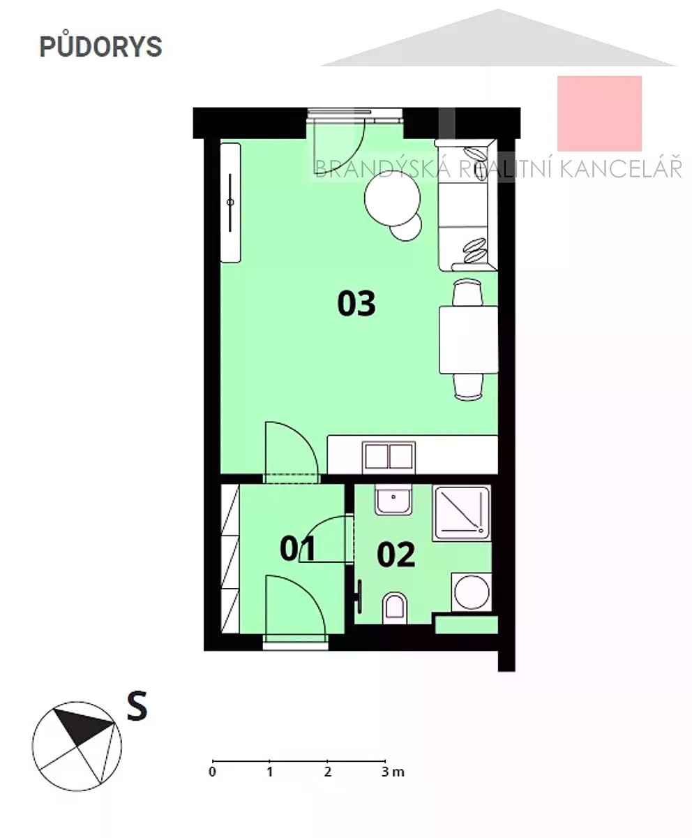 Nabízíme pronájem bytu 1+kk (32m2) ve 2.patře (3.NP) bytového domu z roku 2024 v lokalitě Mýtka, Stará Boleslav. Byt se sestává z obývacího pokoje s kuchyňským koutem (22,0m2), chodby (4,5m2), koupelna s WC (4,4m2), dále k bytu náleží sklepní kóje a garážové stání v suterénu domu. Kuchyňská linka je vybavena vestavěnými spotřebiči (elektrická varná deska, trouba, digestoř a lednice), ostatní zařízení na fotografiích je současné nájemnice s tím, že některé je možné odkoupit. Orientace bytu je na jiho-východ. Měsíční poplatky včetně garážového stání činí 6.245,-Kč + elektřina 730,-Kč. Vratná kauce (jistota) 20.000,-Kč, provize RK ve výši jednoho měsíčního nájmu; při podpisu nájemní smlouvy je nutné zaplatit celkem 51.000,-Kč. PENB „C“ - 91kWh/ (m2*rok) dle vyhlášky č. 264/2020 Sb. Žádaná lokalita v blízkosti přírody s dobrou občanskou vybaveností, dojezdová vzdálenost do Prahy ČM cca 20 min. Byt bude volný od 01.12.2025.