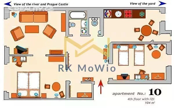 Byt s pěkným výhledem na nábřeží Vltavy a Pražský hrad. Nabízíme k pronájmu kompletně zařízený renovovaný byt s balkonem a zachovanými původními architektonickými prvky v 1. patře zrekonstruovaného secesního domu (1913) s výtahem. Dům stojí přímo na nábřeží Vltavy u oblíbené Náplavky, nedaleko Vyšehradu, pár kroků od stanice metra Palackého (Karlovo) náměstí a zastávek tramvají. Plná občanská vybavenost je dostupná v blízkém v okolí, v rychlém dosahu je také Francouzské lyceum. Byt má velkou centrální vstupní halu, obývací pokoj s klimatizací a balkonem s krásným výhledem, plně vybavenou kuchyň, 2 ložnice, koupelnu s vanou a bidetem, samostatnou toaletu a šatnu. Parkety, dlažba, vysoké stropy, velká okna, centrální vytápění, pračka, myčka, mikrovlnná trouba, TV. Uvedené fotografie ukazují podobný byt v budově.