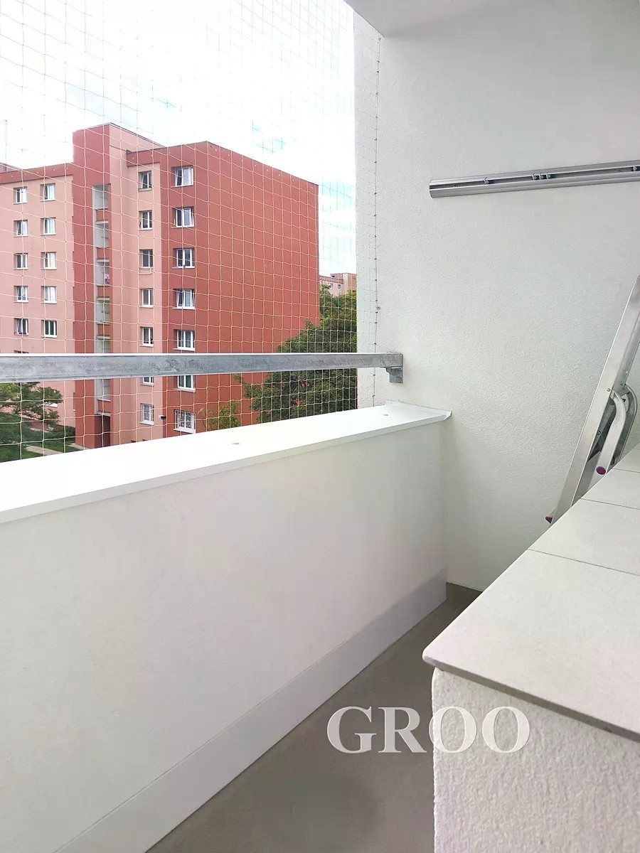 Prostorný, čistý byt 2+1/L po kompletní rekonstrukci ve 4.patře/8 panelového domu v příjemné lokalitě Malešic. Byt je vybaven pouze kuchyňskou linkou s kombinovaným sporákem a obrovskou vestavěnou skříní se zrcadlem v předsíni. Vyzděná koupelna s vanou a WC je dohromady, na podlaze jsou základové koberce a v kuchyni PVC. Výhled je do zeleně a klidné vilové zástavby. Byt je nově vymalován. K dispozici je i sklep v suterénu domu a je zde též uzamykatelná kolárna. Dům je po rekonstrukci a zateplen. Poplatky činí celkem 4600,- Kč včetně záloh na elektřinu a plyn v bytě. Veškerá obč. vybavenost je v blízkosti, zastávka bus 300 m., parkování před domem - modrá zóna. Majitel si vyhrazuje právo zvolit si zájemce a žádá pouze české zájemce bez zvířátek, vhodné pro dlouhodobý pronájem, volný ihned.