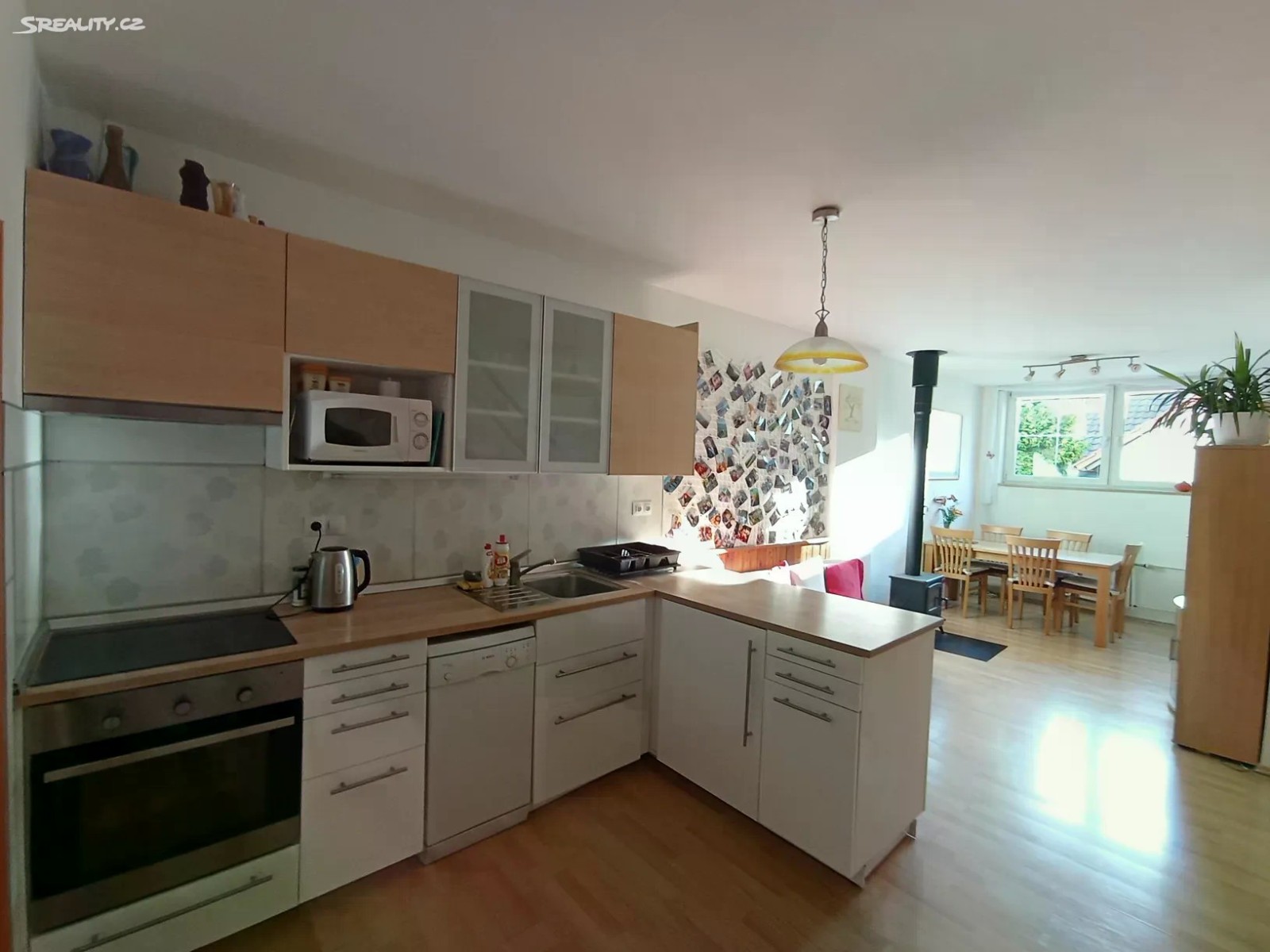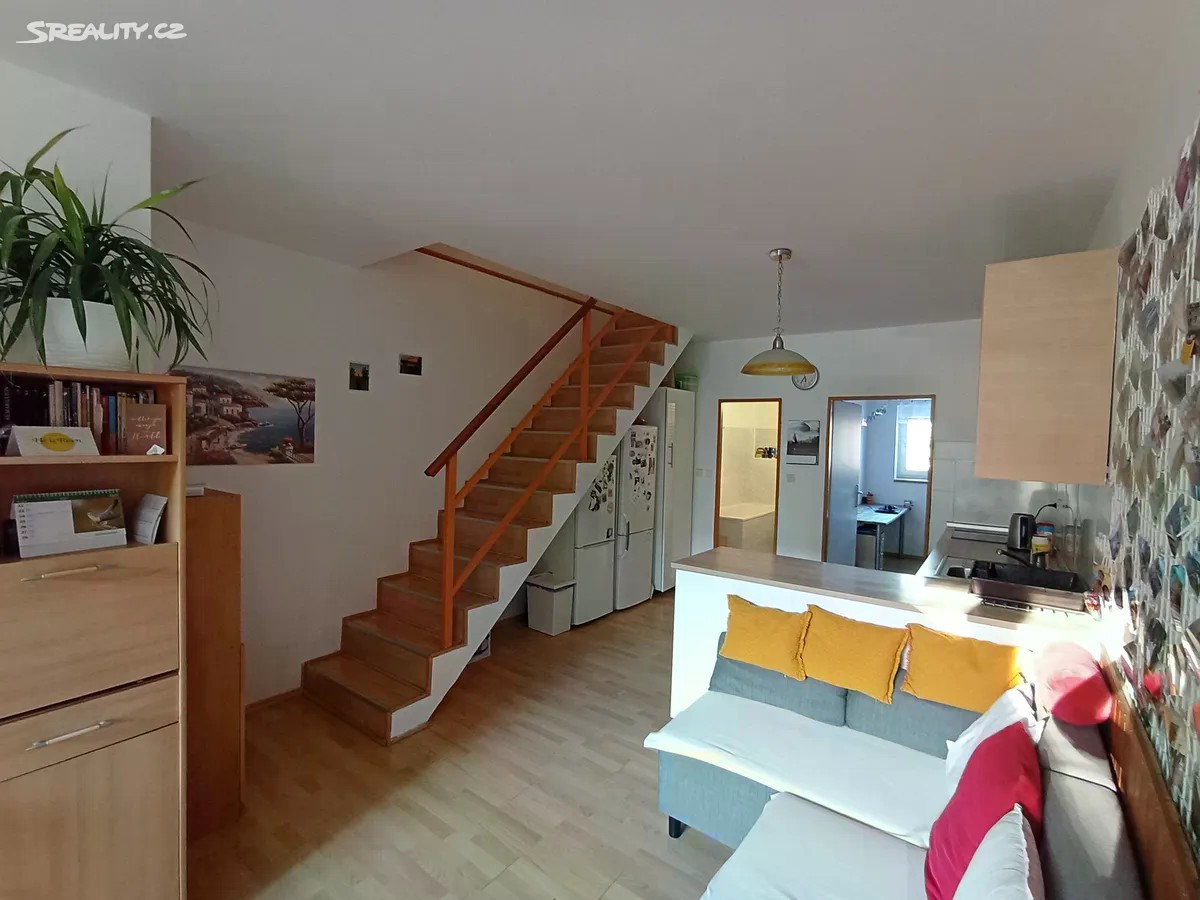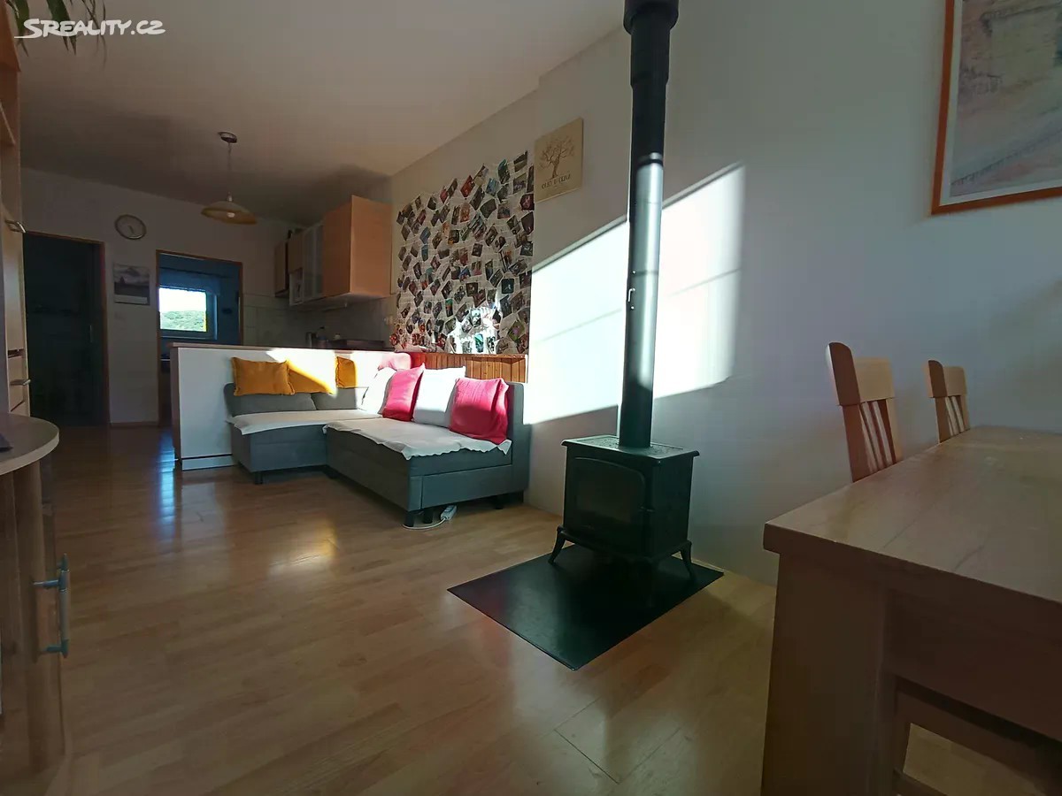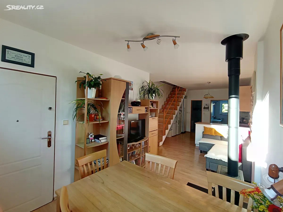 Nabízíme byt 3+1 (přebudovaný na 4+kk) v Černošicích, 86m2 +prostorná garáž+vstupní chodba společná pro 2 byty. Byt se nachází v klidné části obce v domě s celkem šesti různě velkými bytovými jednotkami. Majitelé všech bytů tvoří dobře fungující nezadlužené SVJ. Byt není zatížen hypotékou. Cena bytu je včetně veškerého právního servisu. 1.NP-prostorná garáž; vstupní chodba společná pro 2 byty (včetně schodiště do 2.NP) 2.NP- obývací pokoj s kuchyní (27 m2) - kuchyňská linka je z roku 2014; pokoj ( 6.6m2); koupelna s WC ( 6,4m2). Dominantou obývacího pokoje jsou malá krbová kamna (2022). 2.NP je spojeno s 3.NP schodištěm (3m2) 3.NP - pokoj (19,6m2); pokoj (14 m2);WC s umyvadlem (2,2m2); chodba ( 5m2), šatna (2,2m2). Dům byl vybudován s využitím původní stavby (kina) v roce 2000. V domě je k dispozici i společná sušárna. K domu patří i společný dvůr a náhradní zdroj vody ( studna). Vytápění bytů je zajištěno společným plynovým kotlem. PENB domu sice patří do skupiny G, ale SVJ se chystá v brzké době vyměnit okna a celý dům zateplit (již je na to připravena studie s využitím dotací). Parkovat lze v garáži nebo bez problémů v blízkosti domu. Za 10 minut dojdete od domu na nádraží Černošice - Mokropsy a za 17 minut dojedete vlakem na Smíchovské nádraží. V docházkové vzdálenosti je i autobusová zastávka, školka a škola. Dům se nachází zcela mimo povodňovou zónu, ale jen 3 minuty chůze k vyhlášené mokropeské pláži. Malebné údolí řeky Berounky s okolními kopci skýtá řadu příležitostí k procházkám, cykloturistice…. Pro více informací o této nemovitosti nebo sjednání prohlídky nás prosím kontaktujte nebo vyplňte níže uvedený formulář.