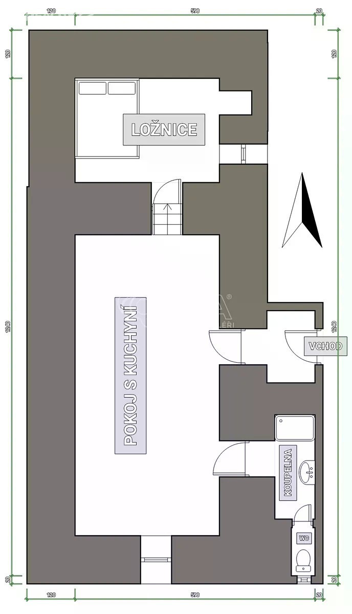 Byt se nachází v přízemí bytového domu s přímým vstupem na uzavřený dvorek. Obývací pokoj s kuchyňským koutem nabízí dostatek prostoru. Na něj navazuje koupelna se sprchovým koutem a toaletou. Po několika schůdkách přejdete do samostatné ložnice. Vytápění je zajištěno klimatizací, voda je městská, obecní kanalizace. Byt může být zajímavou investicí.