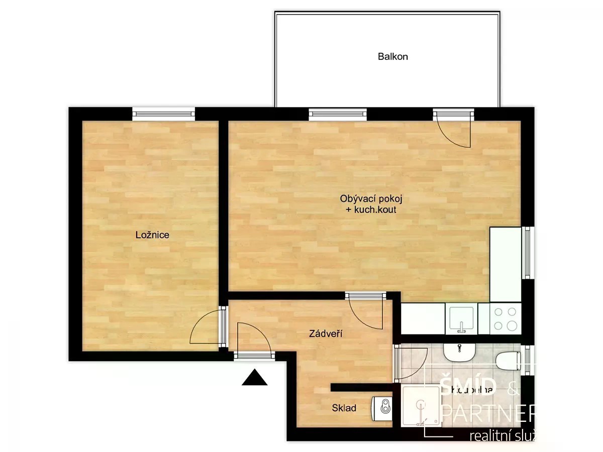 Bezbariérový byt 2+kk o užitné ploše 47 m2 + 9 m2 balkon, se nachází v přízemí novostavby bytového domu ve Velimi u Kolína, dokončeného v roce 2022. Dům je postaven z kvalitních materiálů, dobře zateplen, osazen hliníkovými dveřmi, prémiovými plastovými okny, má bezpečný vstup na čip a klíč, o vytápění se stará úsporný kondenzační plynový kotel, teplou vodu zajišťuje dražický bojler. Interiér je světlý a vzdušný. Obývací pokoj s kuchyňským koutem nabízí moderní linku v bílé barvě s dekorem dubu a vestavěnými spotřebiči. Podlahy kombinují praktickou keramickou dlažbu v matné antracitové barvě a plovoucí podlahu. Z obývacího pokoje vedou dveře na velkorysý balkón, ideální pro posezení nebo malou zahrádku v truhlících. K bytu patří i skladovací kóje - 3,6 m2, v samostatně stojící přízemní budově vedle domu. Pohodlně zde uložíte kola, pneumatiky či sportovní vybavení. Další velkou výhodou je parkovací místo u domu, které je již zahrnuto v ceně bytu a díky poloze bytu v přízemí a balkónu, můžete nákupy nosit přímo do bytu. Vlastní parkovací stání vám dá jistotu, že nebudete kroužit a hledat místo k zaparkování jako na panelových sídlištích. Z vlakové zastávky, vzdálené od domu cca 5 minut chůze, vás přímý vlak z Velimi dopraví do Prahy za 35 minut a do Kolína dojedete za pouhých 6 minut. Vlaky jezdí v krátkých intervalech po celý den. Nájezd na dálnici D11, Praha H.K. je vzdálen 5 km! Obec nabízí školku, základní školu, praktického a dětského lékaře, stomatologa, poštu, knihovnu, sportovní areály a obchody s potravinami i základními službami. Najdete zde také restaurace, dětská hřiště, multifunkční sportovní halu, fotbalové hřiště, zimní stadion a aktivní společenský život. Velmi nízké měsíční náklady na vytápění, energie a fond oprav, dělají z tohoto bytu velkou příležitost nejen pro vlastní bydlení, ale i ideální investici. Pokud hledáte moderní byt v klidném prostředí s vynikající dostupností, přijďte se podívat, nebudete litovat. Pro další informace nebo prohlídku bytu, prosím kontaktujte makléřku.
