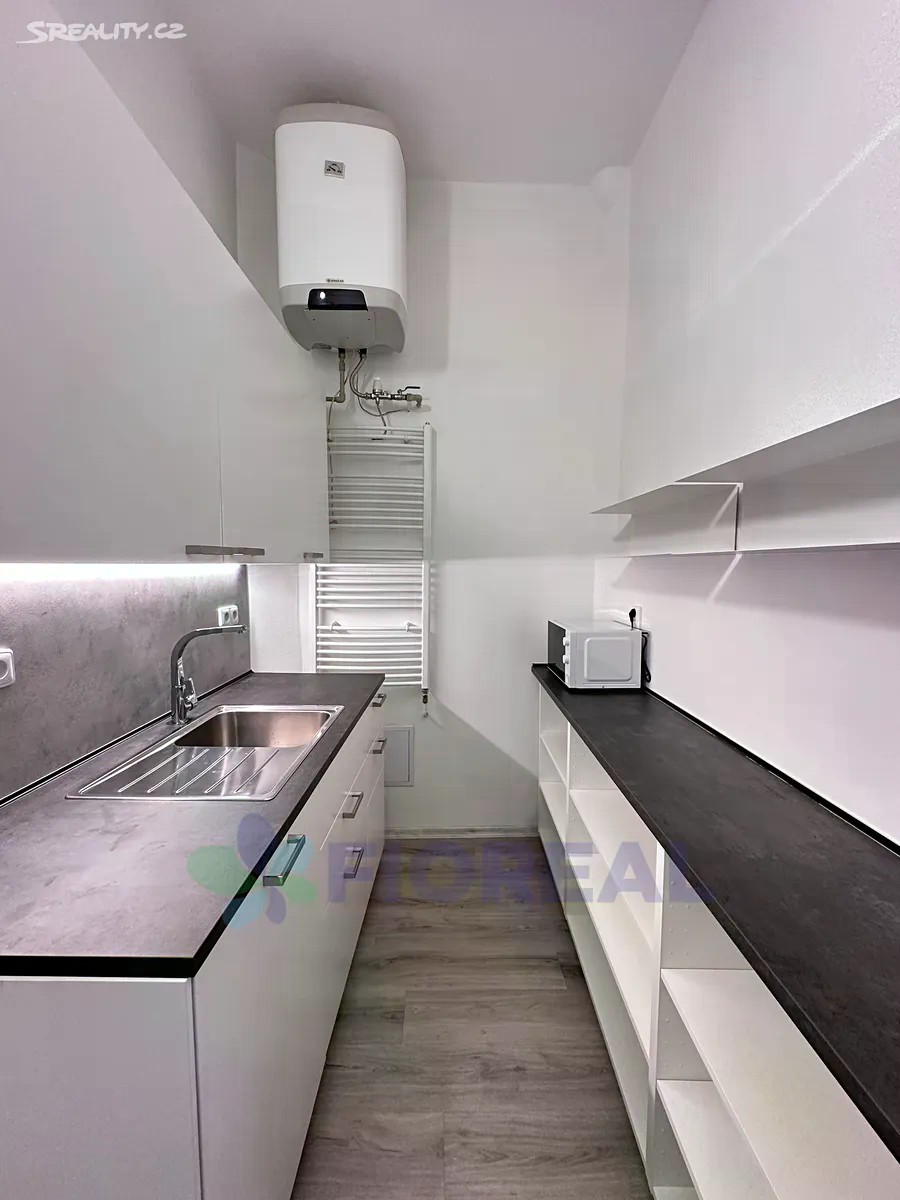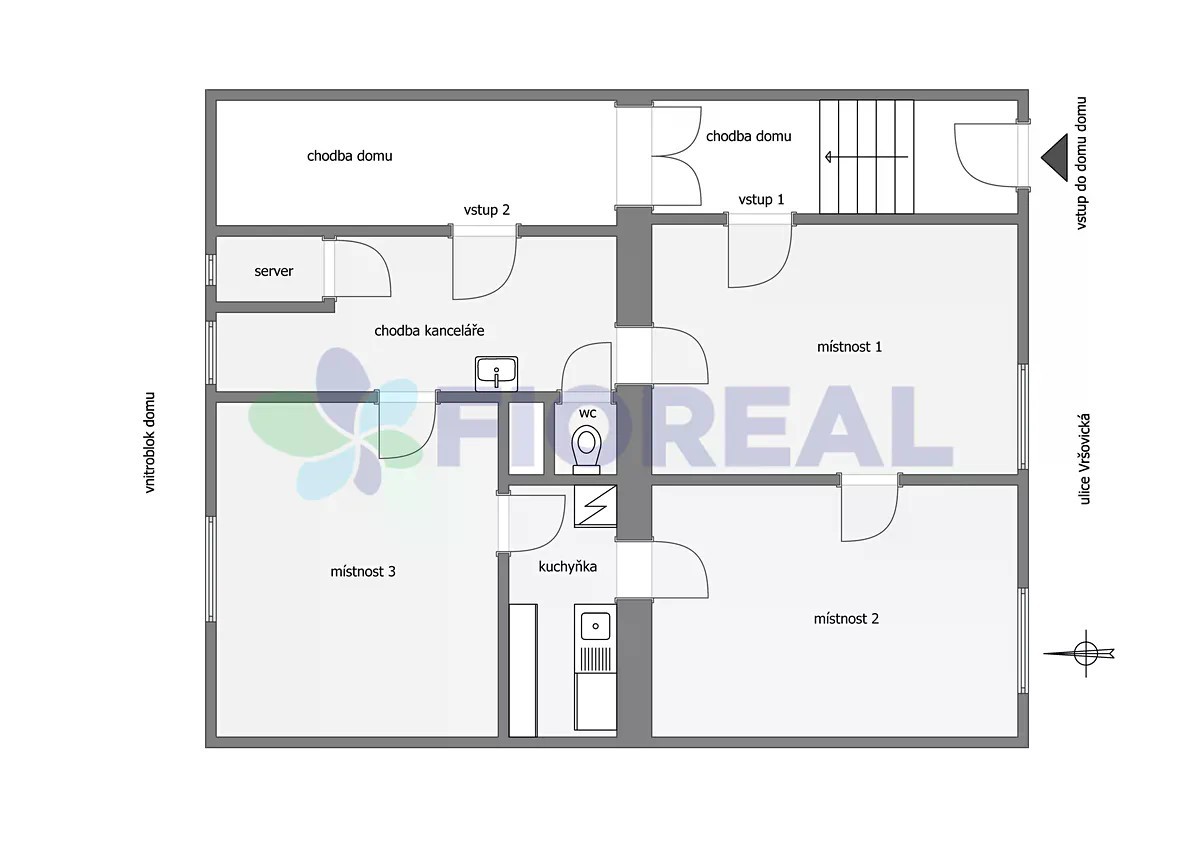 Zprostředkujeme pronájem kanceláře o velikosti 79 m² nacházející se ve zvýšeném přízemí kancelářského činžovního domu. Prostor nabízí 3 kancelářské místnosti, vybavenou kuchyňku a samostatnou toaletu. Dvě místnosti jsou situované na jih (Vršovická ulice) a třetí na sever do vnitrobloku, viz. dispoziční plánek ve fotogalerii. Vstup do prostor je z domu (dokonce dva vstupy), nikoli z ulice. Nejen z tohoto důvodu není vhodné prostor použít k určitým účelům, váš záměr prvně konzultujte s makléřem. Na podlaze je položen koberec, okna do ulice mají fólii, díky které není dovnitř vidět, ale ven ano, fólie se dá jednoduše odstranit. V kanceláři jsou aktuálně k dispozici pracovní stoly a židle, mohou/nemusí zde zůstat, foto bude doplněno, nebo na vyžádání. Udržovaný a výborně spravovaný dům je zabezpečen vstupem na čipy, unikátní záležitostí je parkovací dům umístěný ve vnitrobloku. Vjezd z ulice je na dálkové ovládání a vy se tak do své kanceláře dostanete zcela suchou nohou, protože parkovací dům je s budovou kanceláře propojen zastřešenou spojovací lávkou vedoucí přímo k výtahu v domě. Parkovací stání je možné pronajmout za příplatek 2.900 Kč + DPH. Vršovická ulice nabízí veškerou vybavenost a služby a především perfektní spojení do centra pomocí tramvají. Měsíční poplatky 1.000 Kč + zálohy na elektřinu a plyn, které se převádějí na nájemníka. Kauce dva měsíční nájmy, provize jeden měsíční nájem.